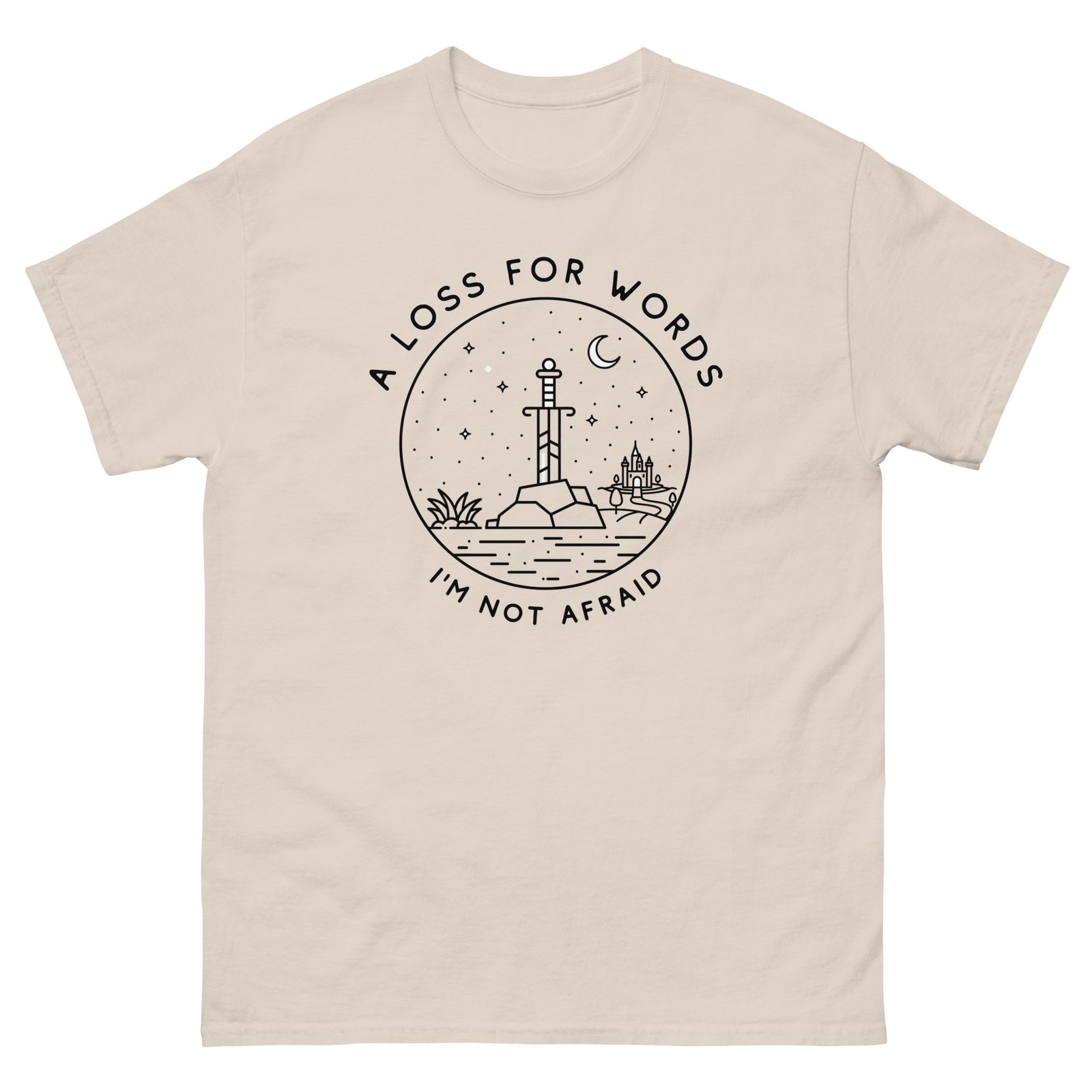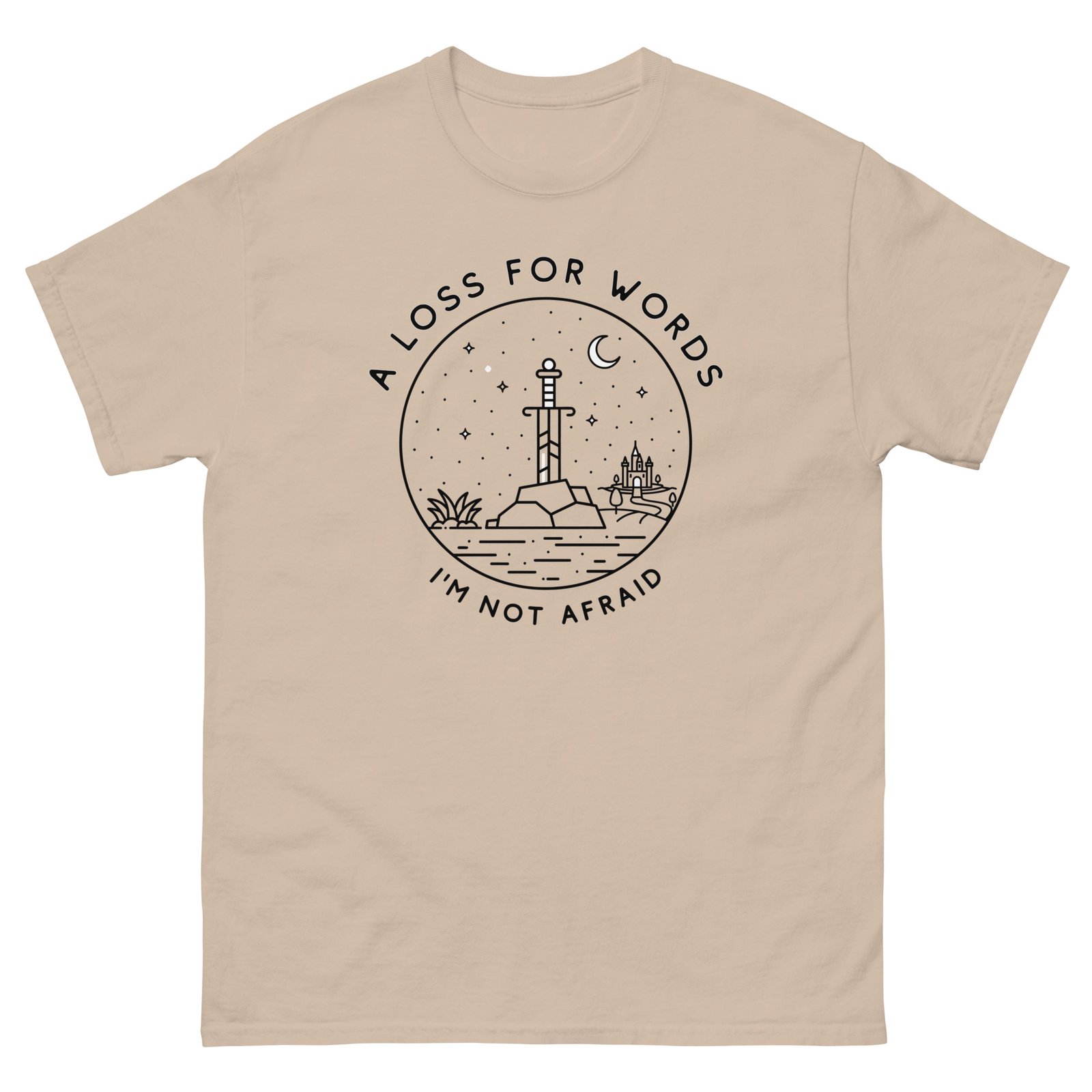 The 100% cotton A Loss for Words Sword unisex classic tee will help you land a more structured look. It sits nicely, maintains sharp lines around the edges, and goes perfectly with layered streetwear outfits. Plus, it’s extra trendy now!