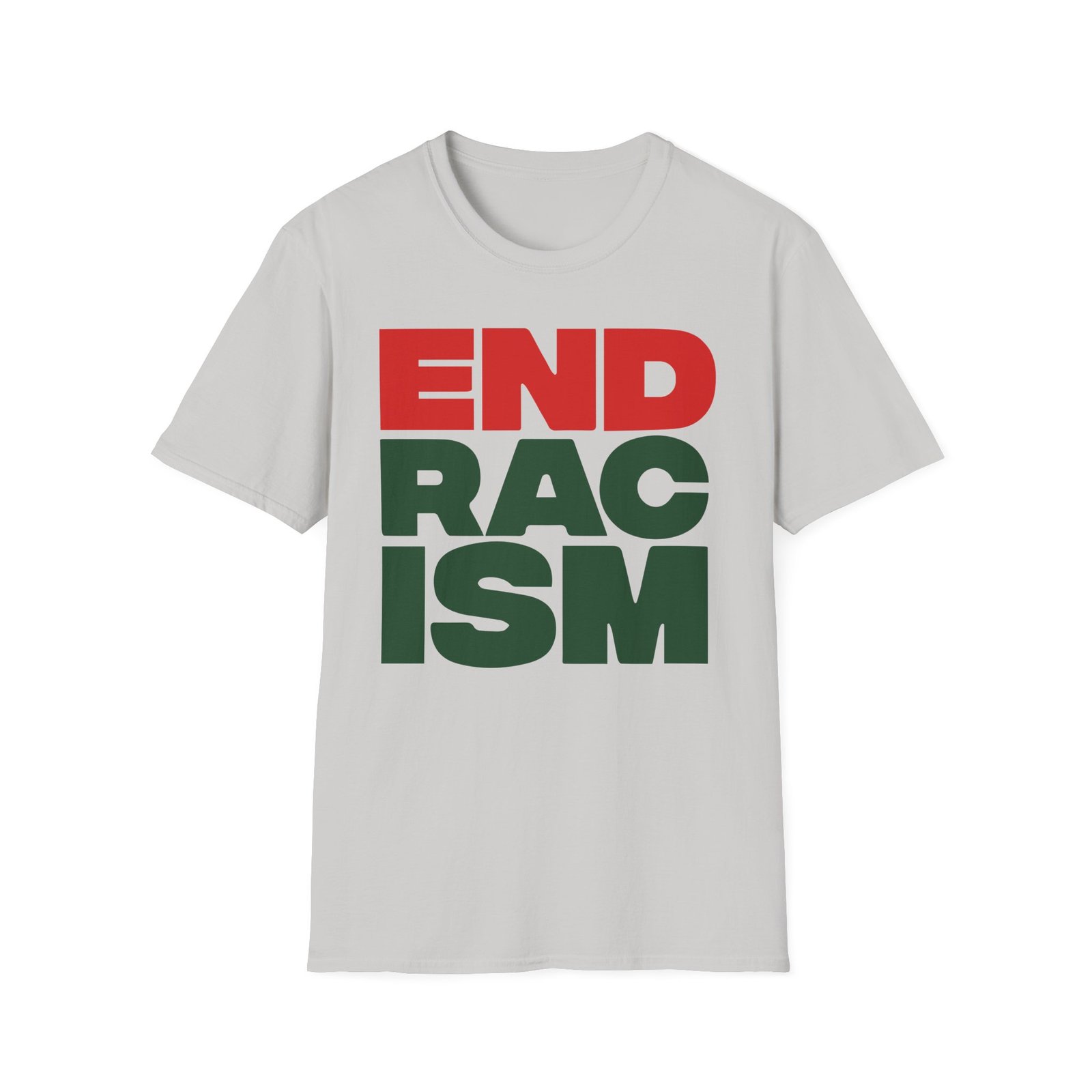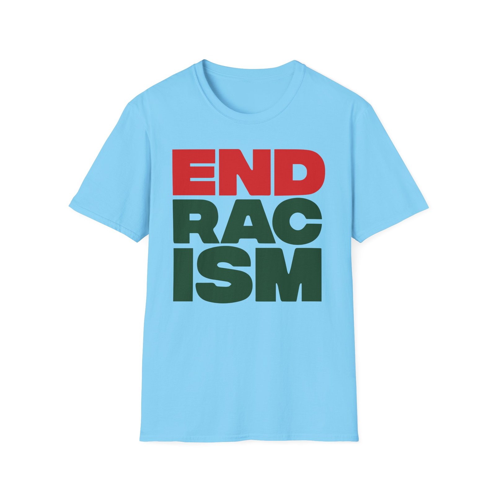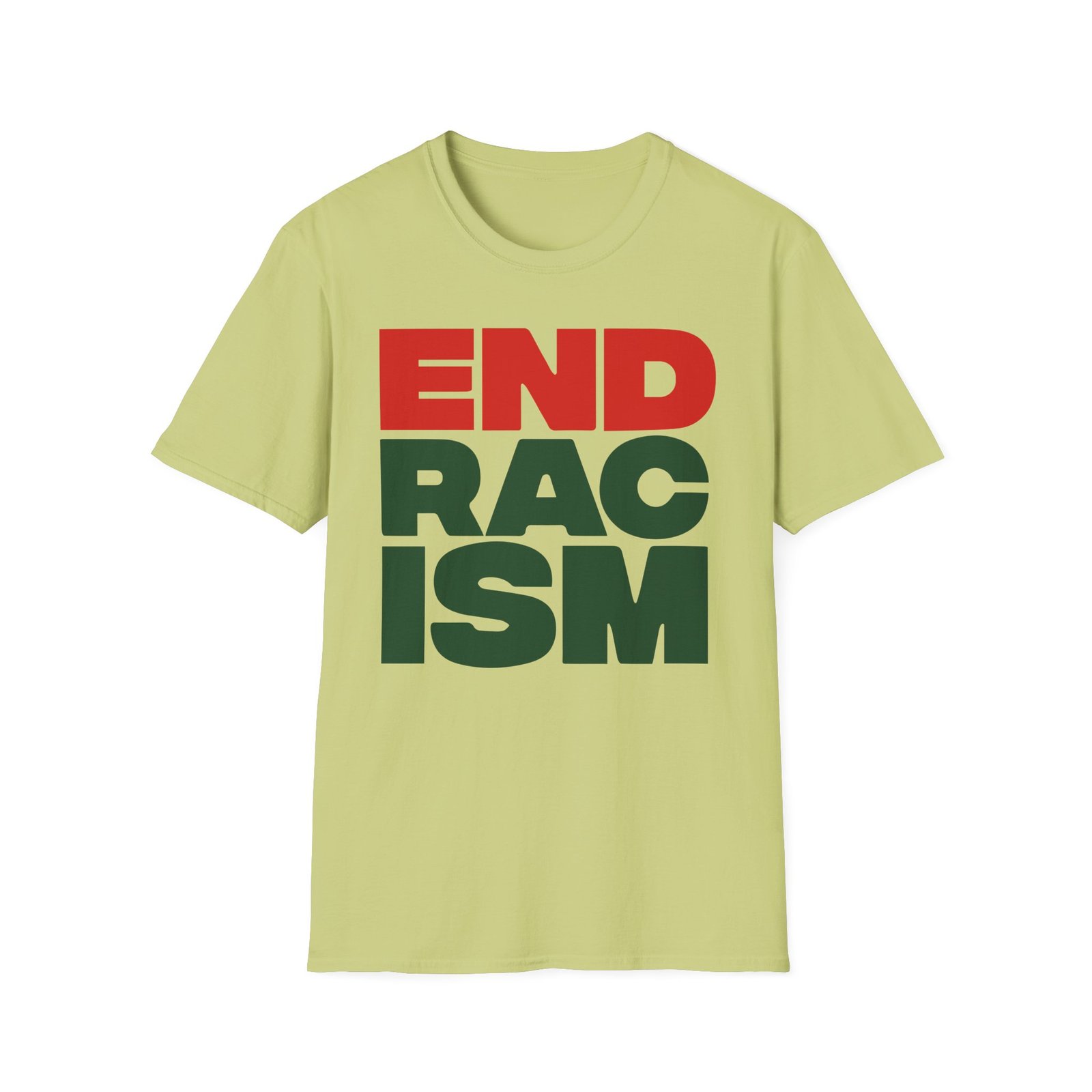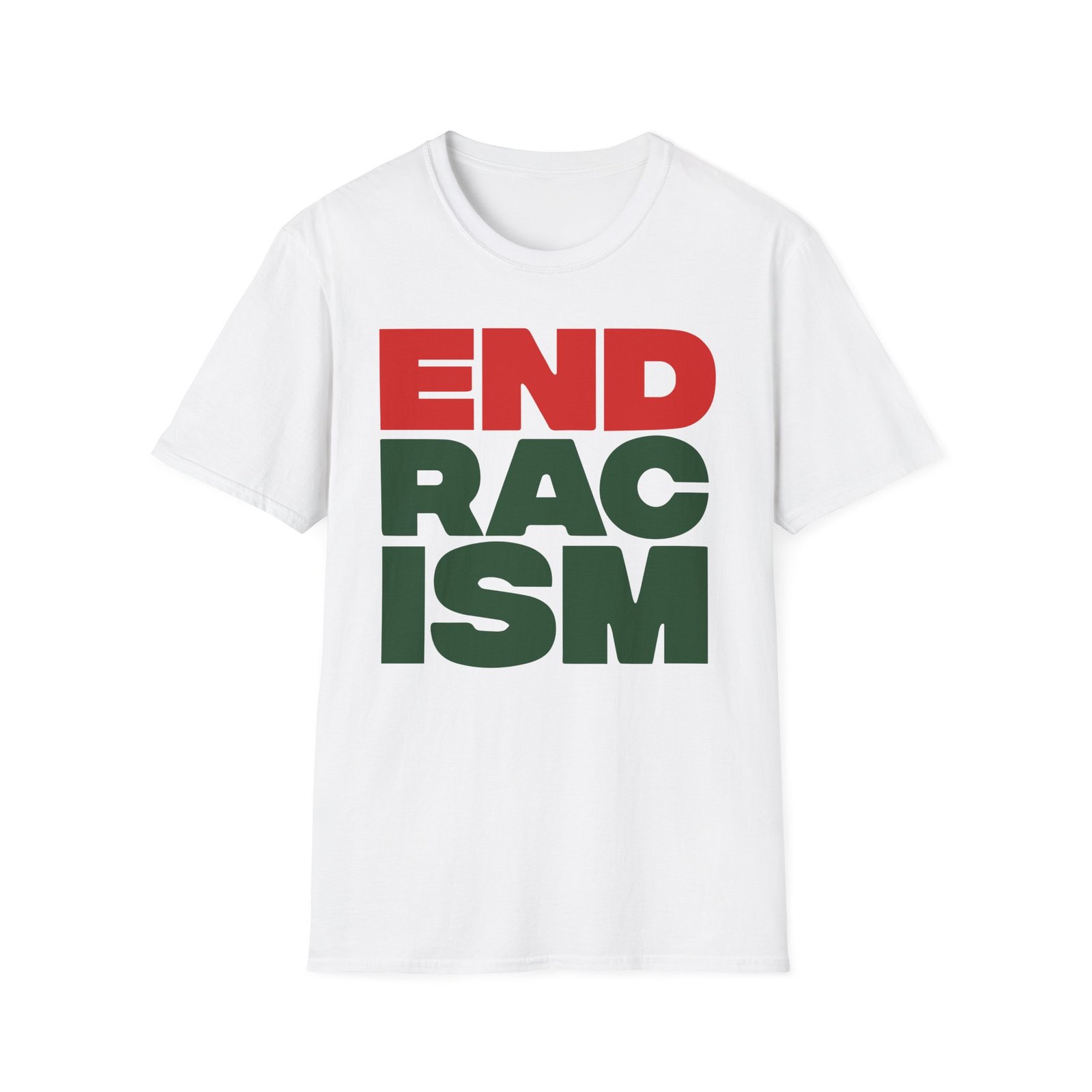 The A Tribe Called End Racism unisex soft-style t-shirt puts a new spin on casual comfort. Made from very soft materials, this tee is 100% cotton for solid colors. Heather colors and sports grey include polyester. The shoulders have twill tape for improved durability. There are no side seams. The collar is made with ribbed knitting to prevent curling damage.