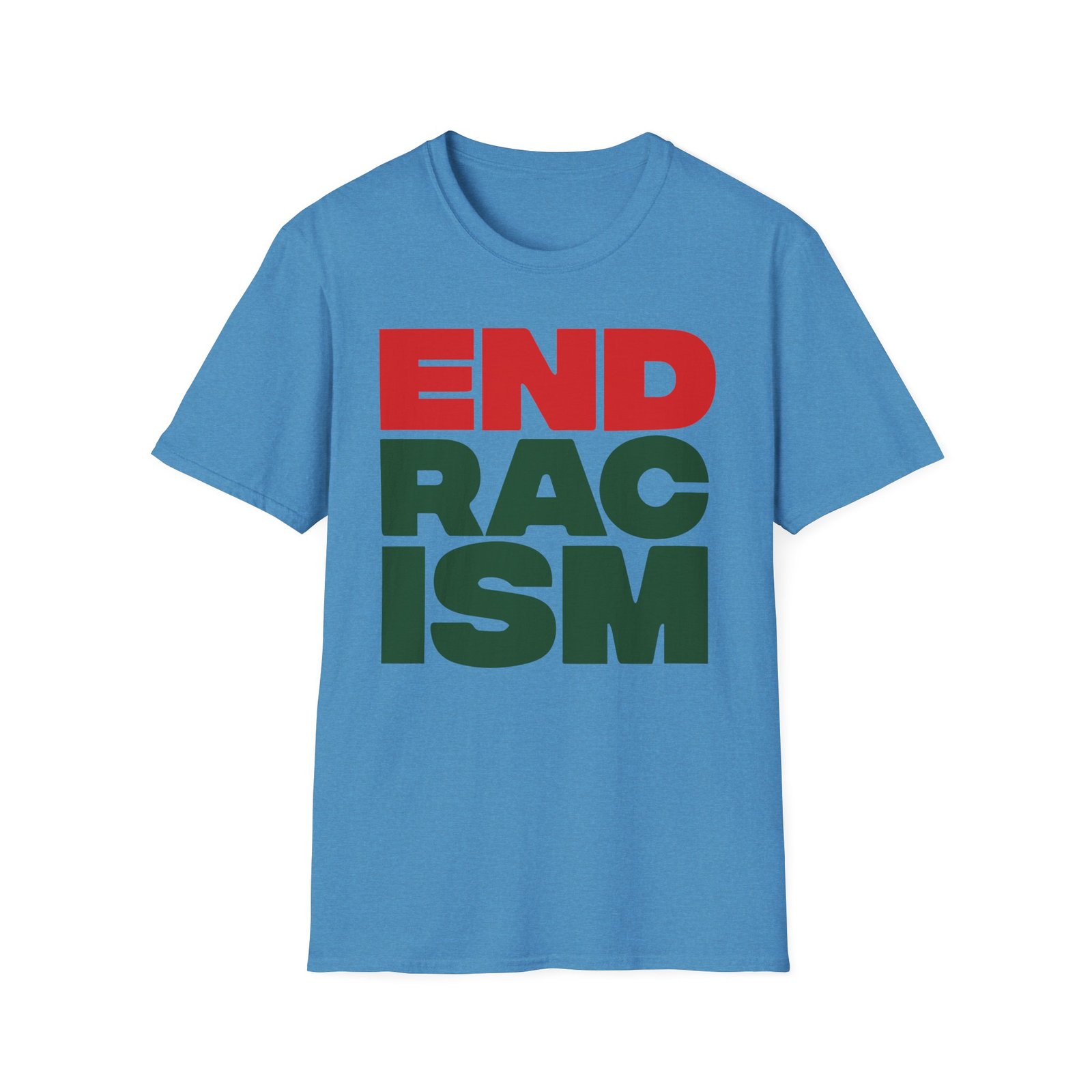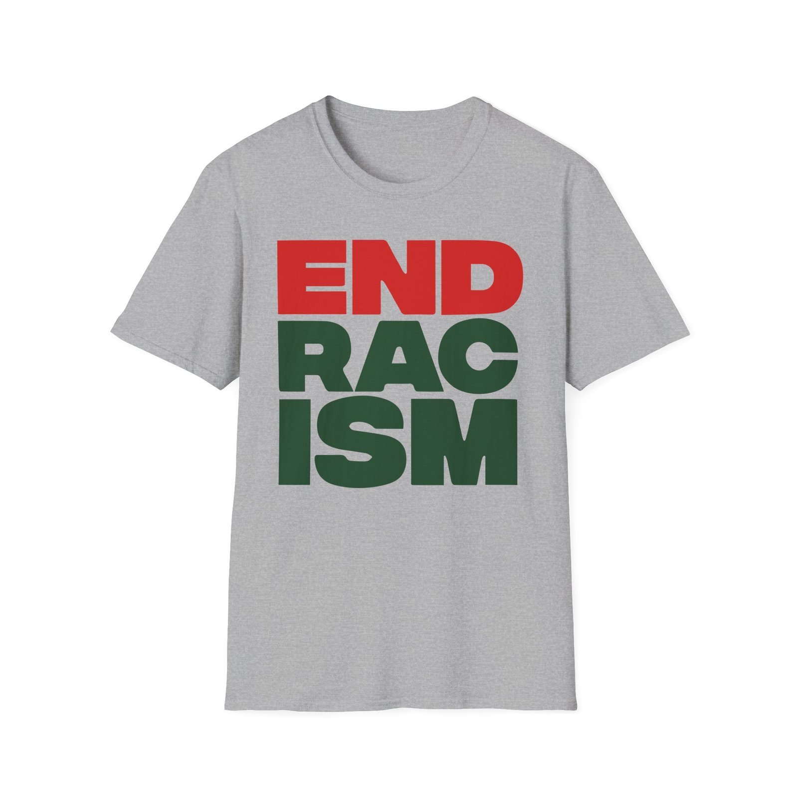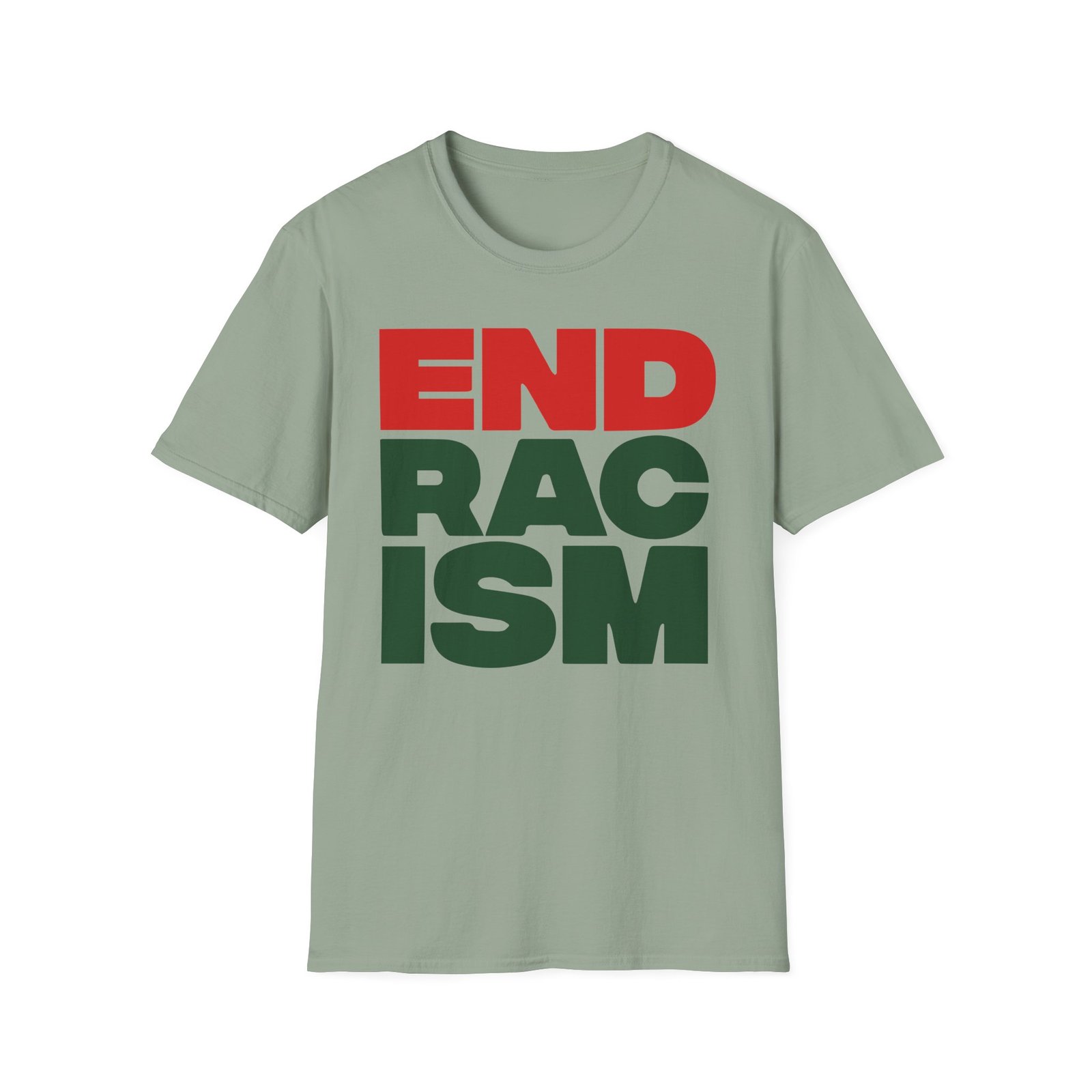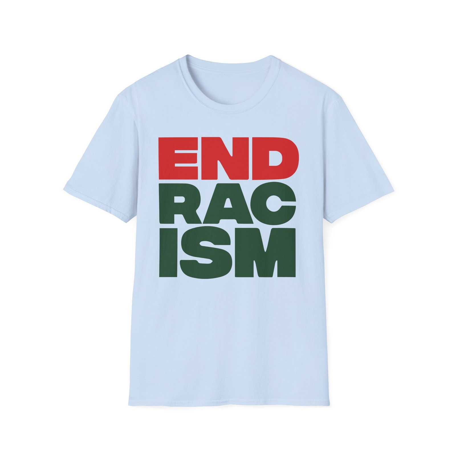 The A Tribe Called End Racism unisex soft-style t-shirt puts a new spin on casual comfort. Made from very soft materials, this tee is 100% cotton for solid colors. Heather colors and sports grey include polyester. The shoulders have twill tape for improved durability. There are no side seams. The collar is made with ribbed knitting to prevent curling damage.