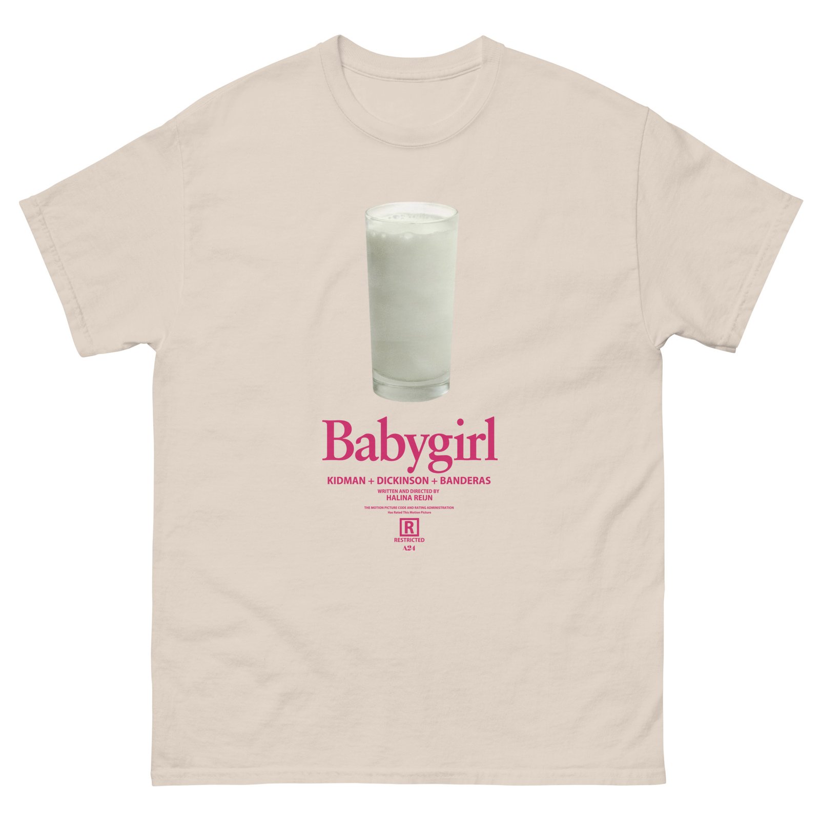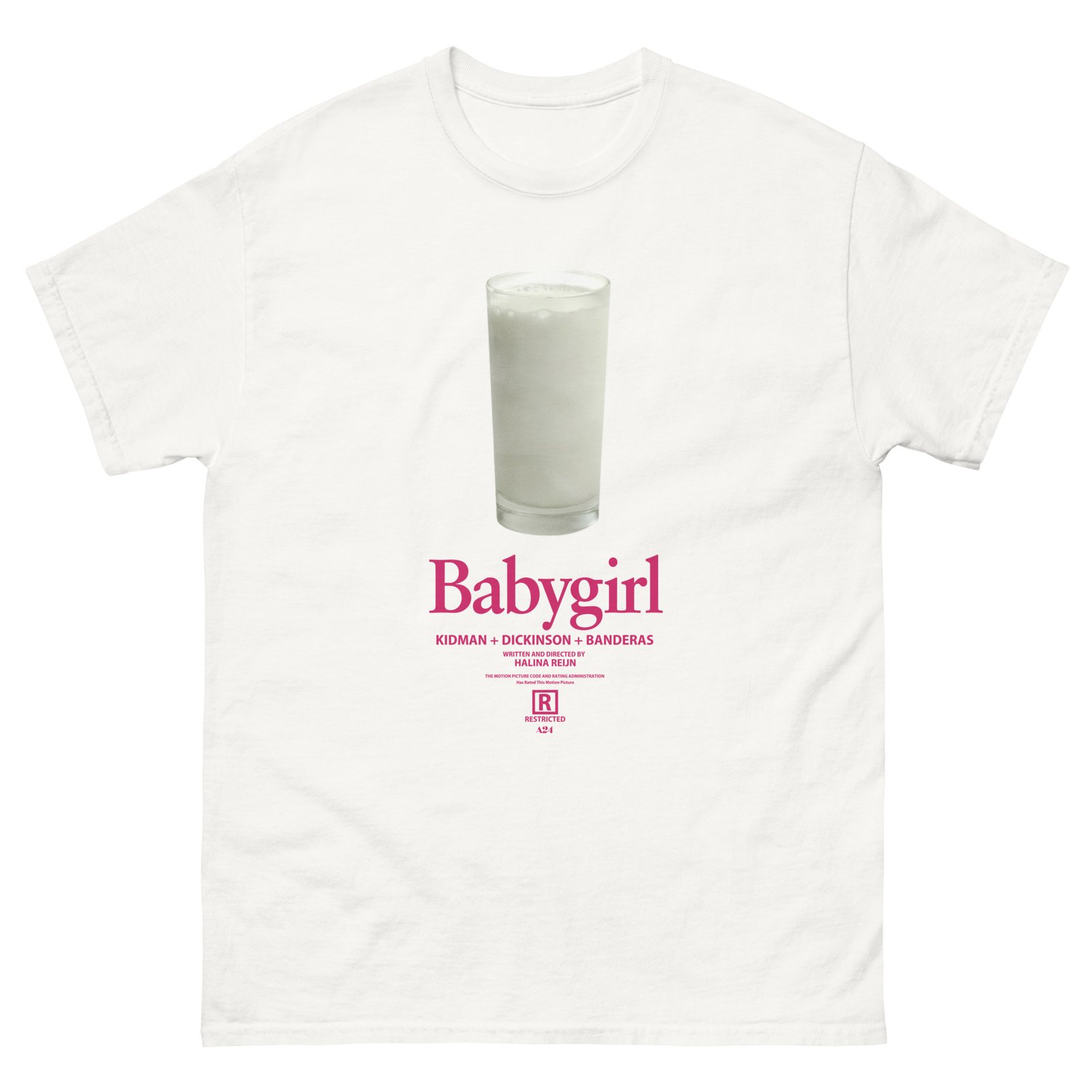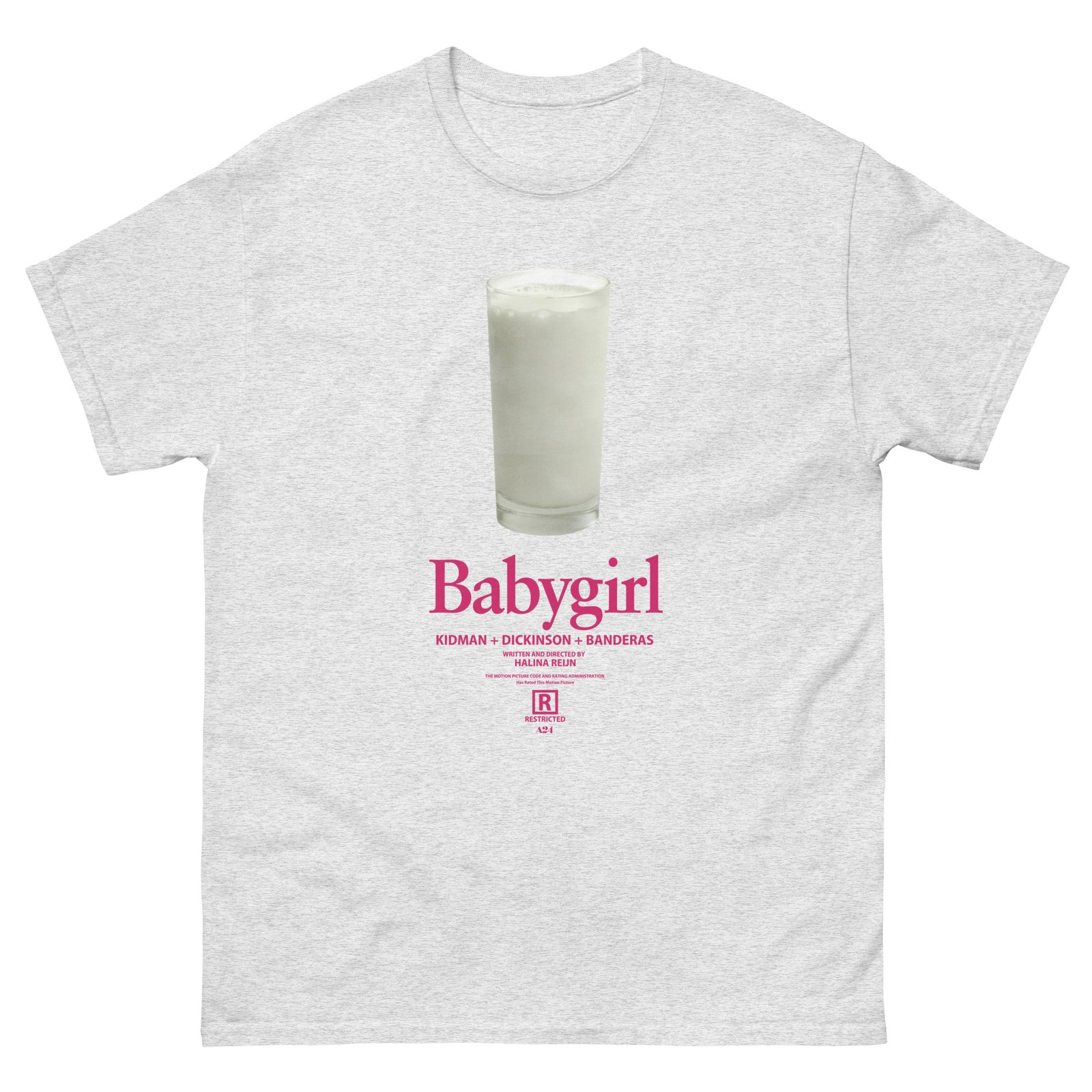 The 100% cotton A24 Babygirl Milk unisex classic tee will help you land a more structured look. It sits nicely, maintains sharp lines around the edges, and goes perfectly with layered streetwear outfits. Plus, it’s extra trendy now!