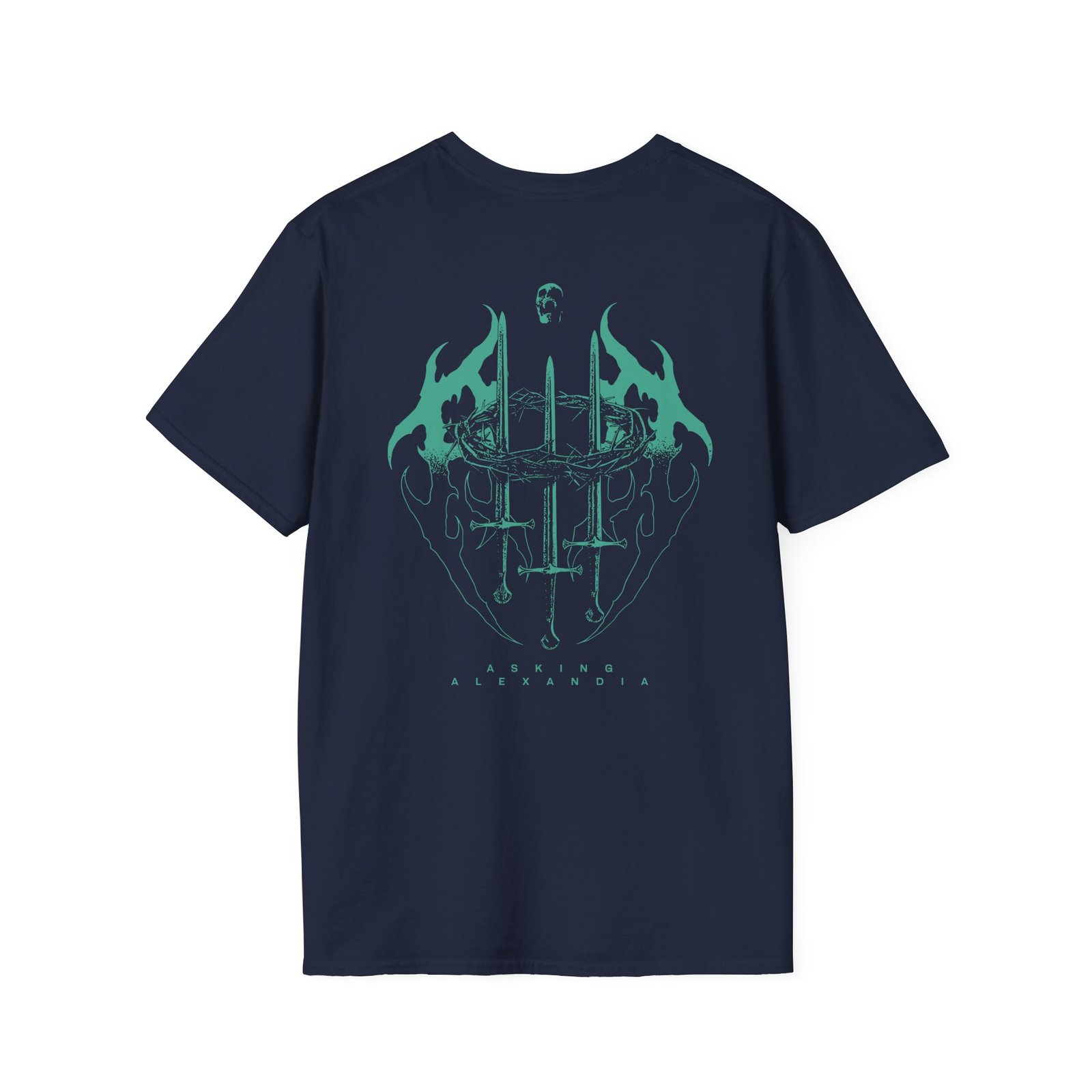 The Asking Alexandria Crown Sword unisex soft-style t-shirt puts a new spin on casual comfort. Made from very soft materials, this tee is 100% cotton for solid colors. Heather colors and sports grey include polyester. The shoulders have twill tape for improved durability. There are no side seams. The collar is made with ribbed knitting to prevent curling damage.