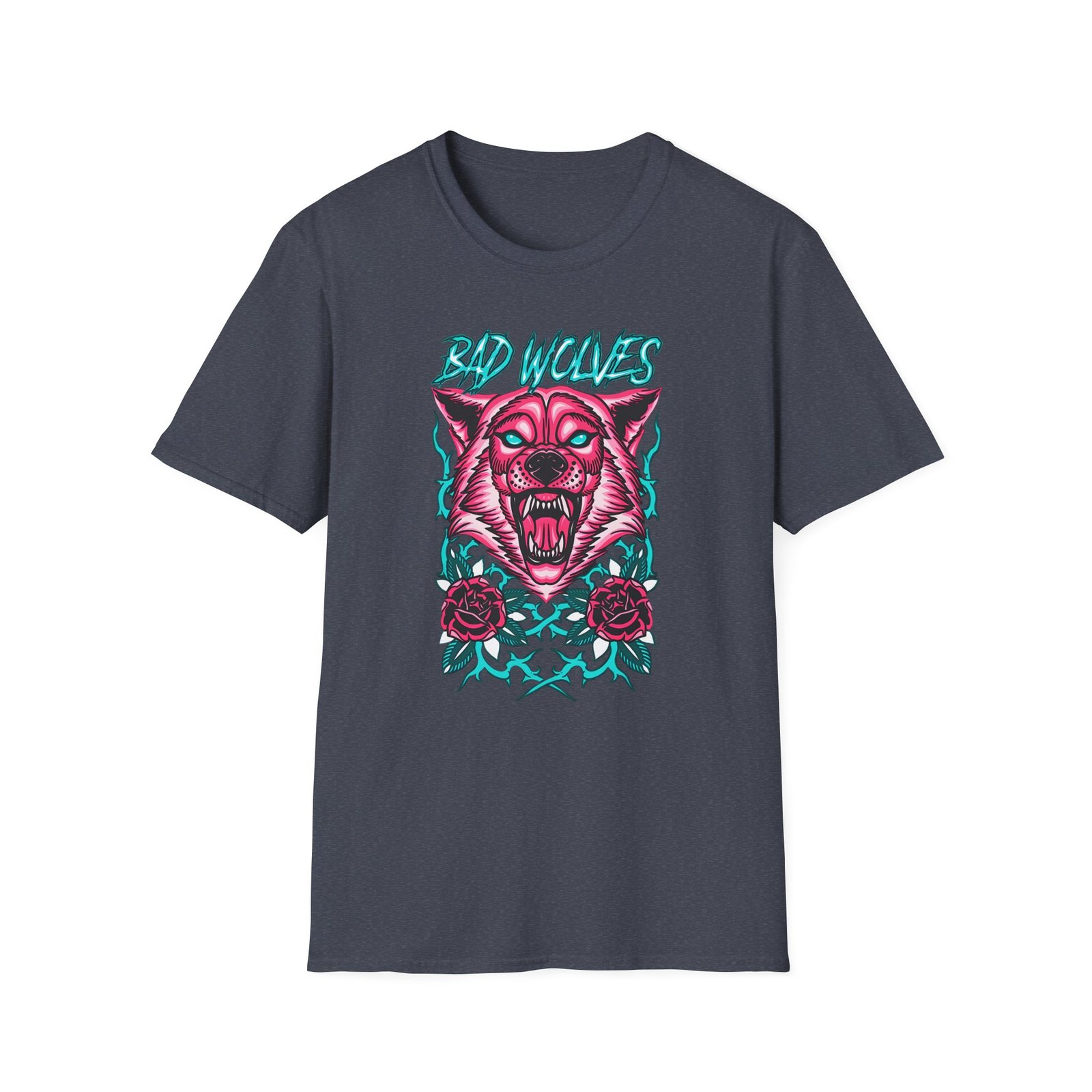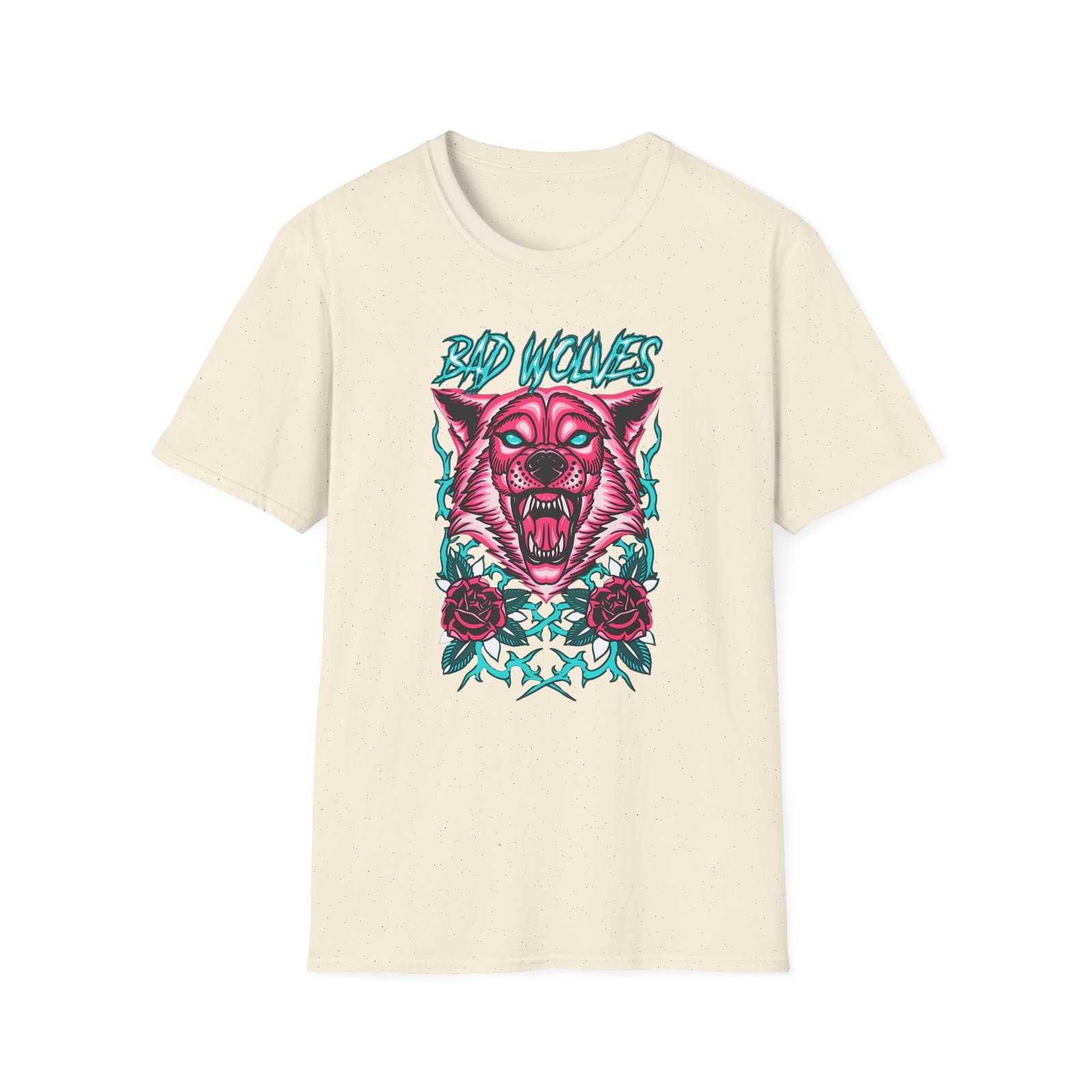 Introducing our stylish Bad Wolves Wolf in Vines Unisex Softstyle T-Shirt, designed for those who embrace individuality and creativity. Featuring a striking graphic of a fierce wolf, this t-shirt captures attention and adds a bold touch to any outfit. Its lightweight, ring-spun cotton fabric ensures ultimate comfort, making it perfect for year-round wear. Whether you’re dressing up for casual outings or looking to express your unique style, this versatile tee fits seamlessly into your wardrobe. Ideal for fans of edgy designs and wild aesthetics, it’s a great gift for birthdays, holidays, or simply for the fashion-forward individual in your life. Celebrate self-expression and unleash your wild side with this must-have t-shirt!