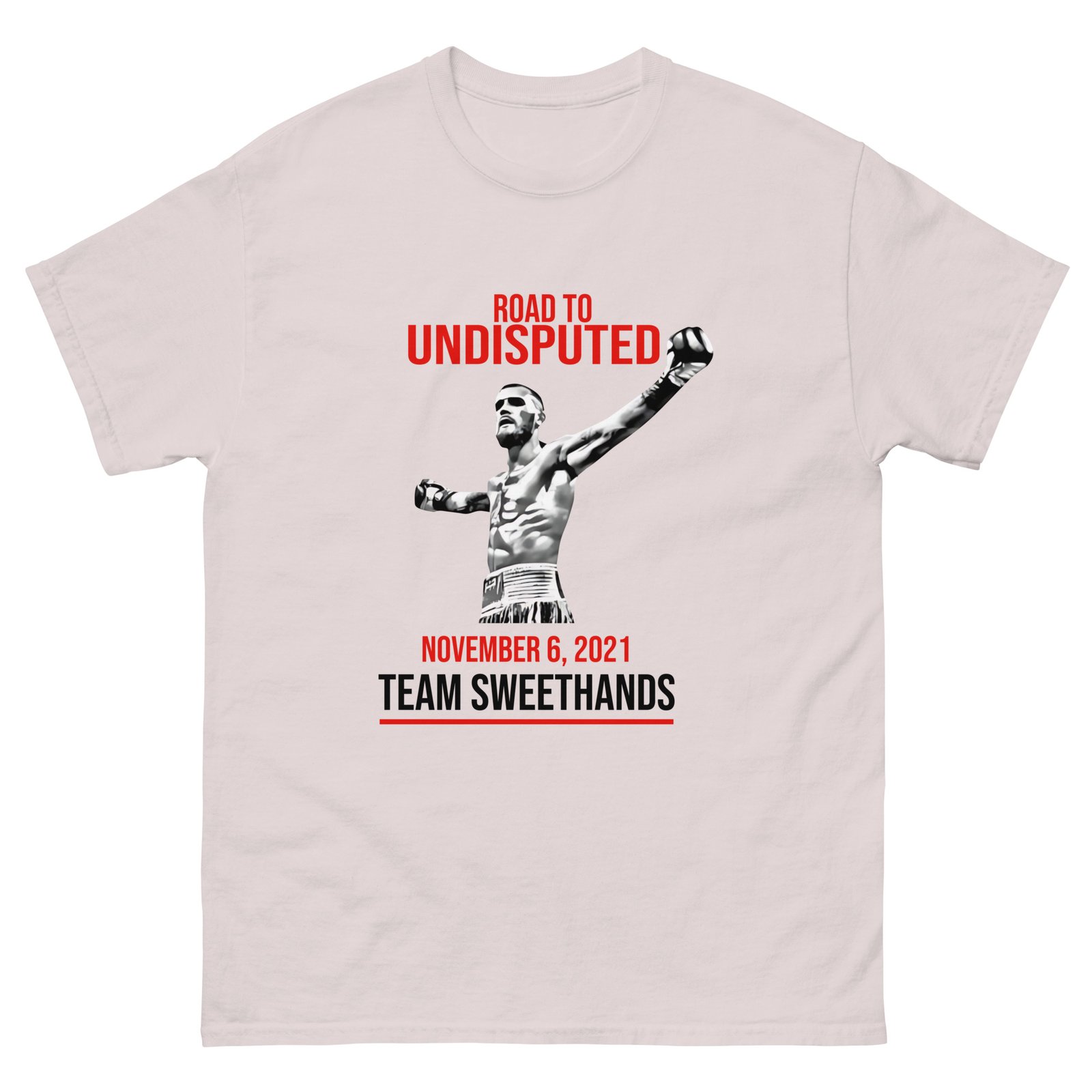 The 100% cotton Caleb Plant Team Plant Nov 6th Fight unisex classic tee will help you land a more structured look. It sits nicely, maintains sharp lines around the edges, and goes perfectly with layered streetwear outfits. Plus, it’s extra trendy now!