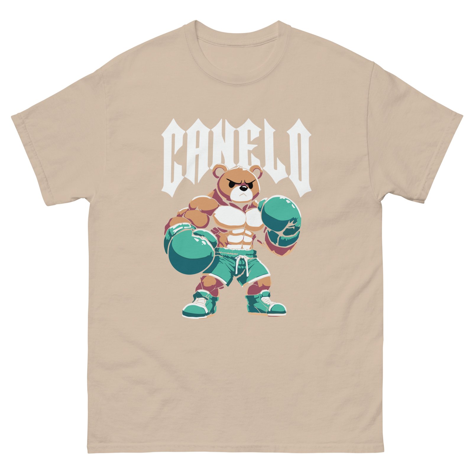 The 100% cotton Canelo Teddy Bear unisex classic tee will help you land a more structured look. It sits nicely, maintains sharp lines around the edges, and goes perfectly with layered streetwear outfits. Plus, it’s extra trendy now!
