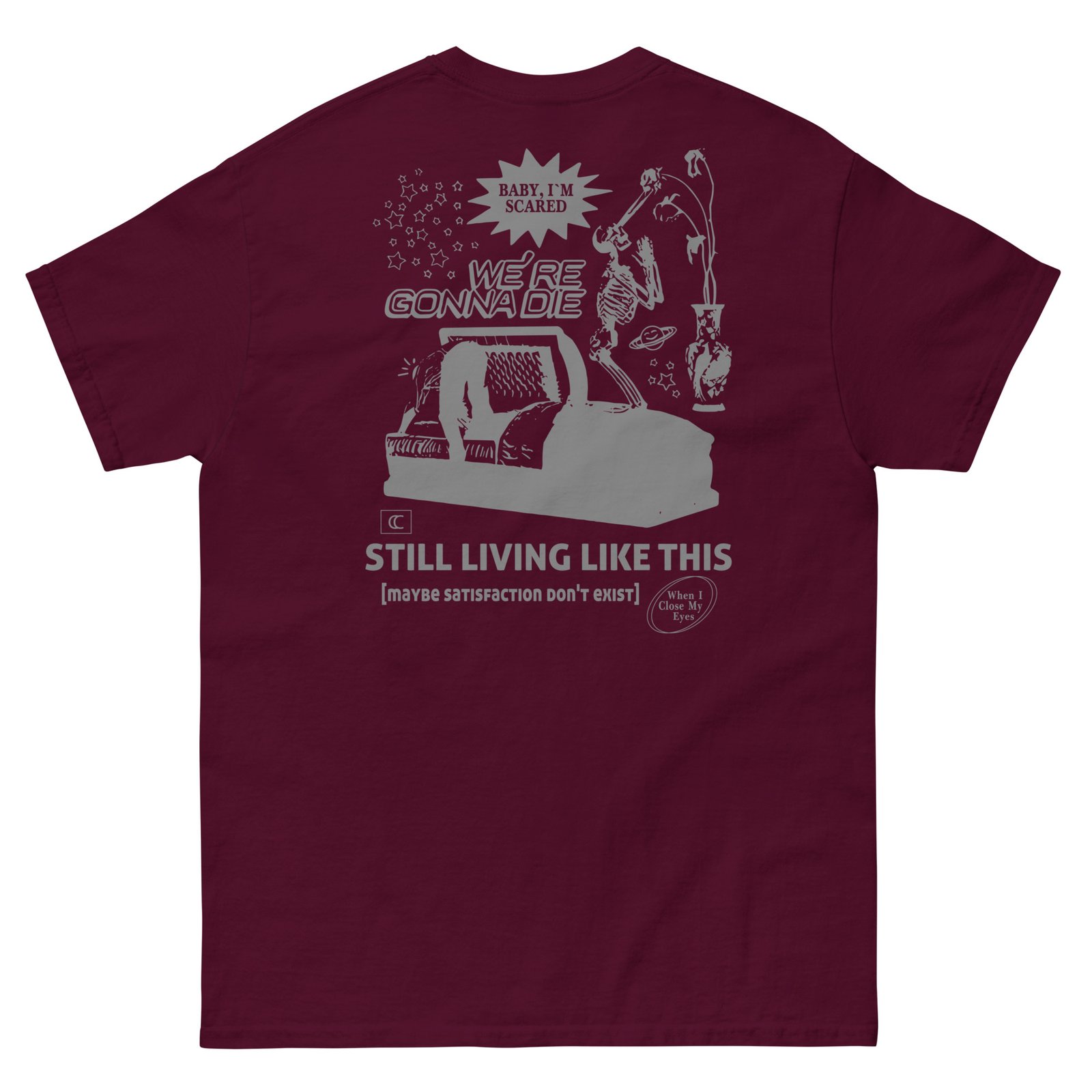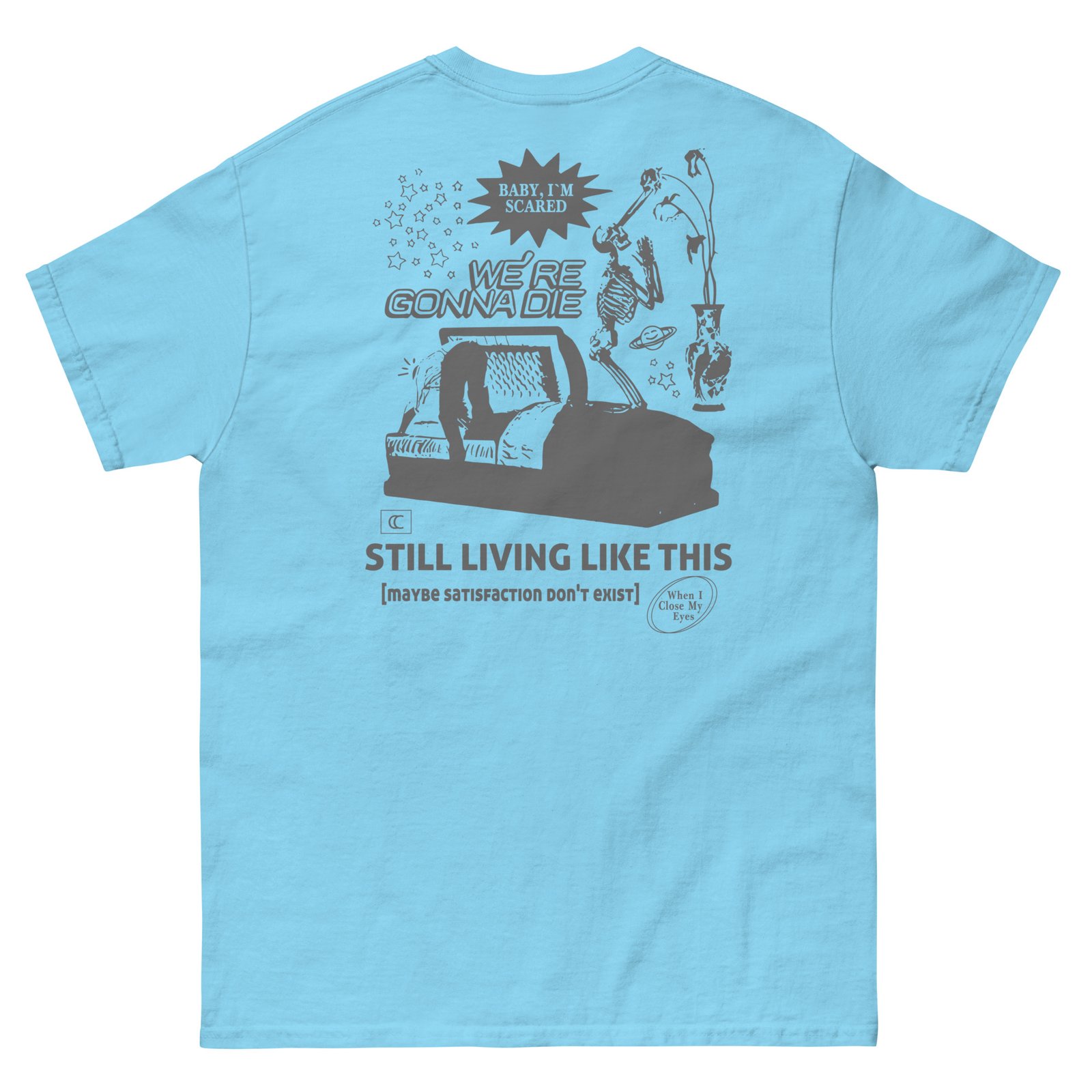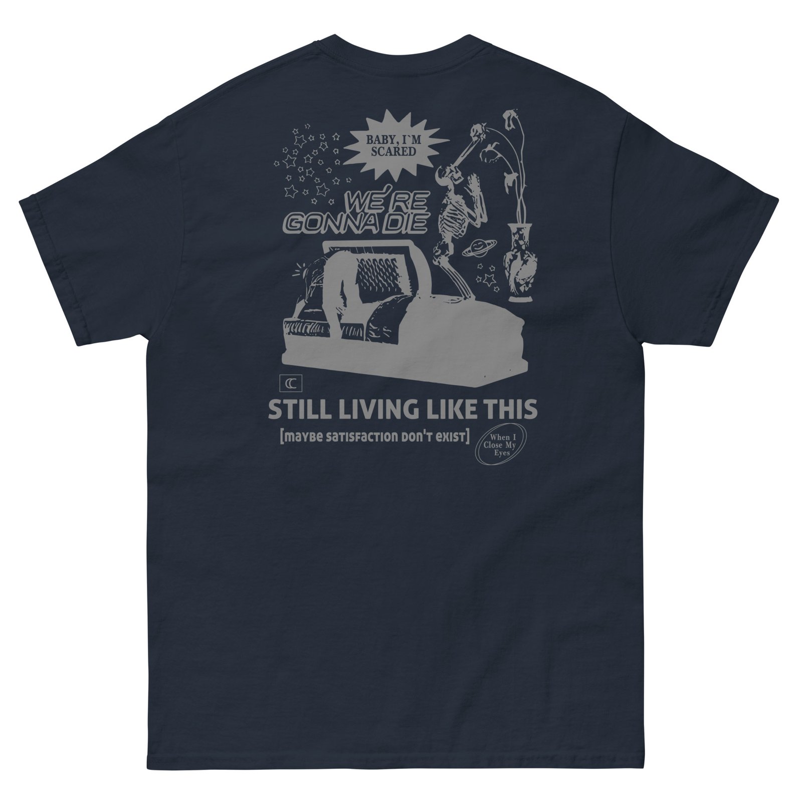 The 100% cotton Chelsea Cutler Still Living Like This unisex classic tee will help you land a more structured look. It sits nicely, maintains sharp lines around the edges, and goes perfectly with layered streetwear outfits. Plus, it’s extra trendy now!