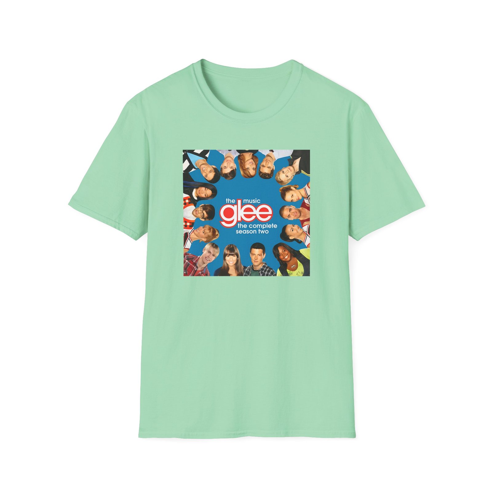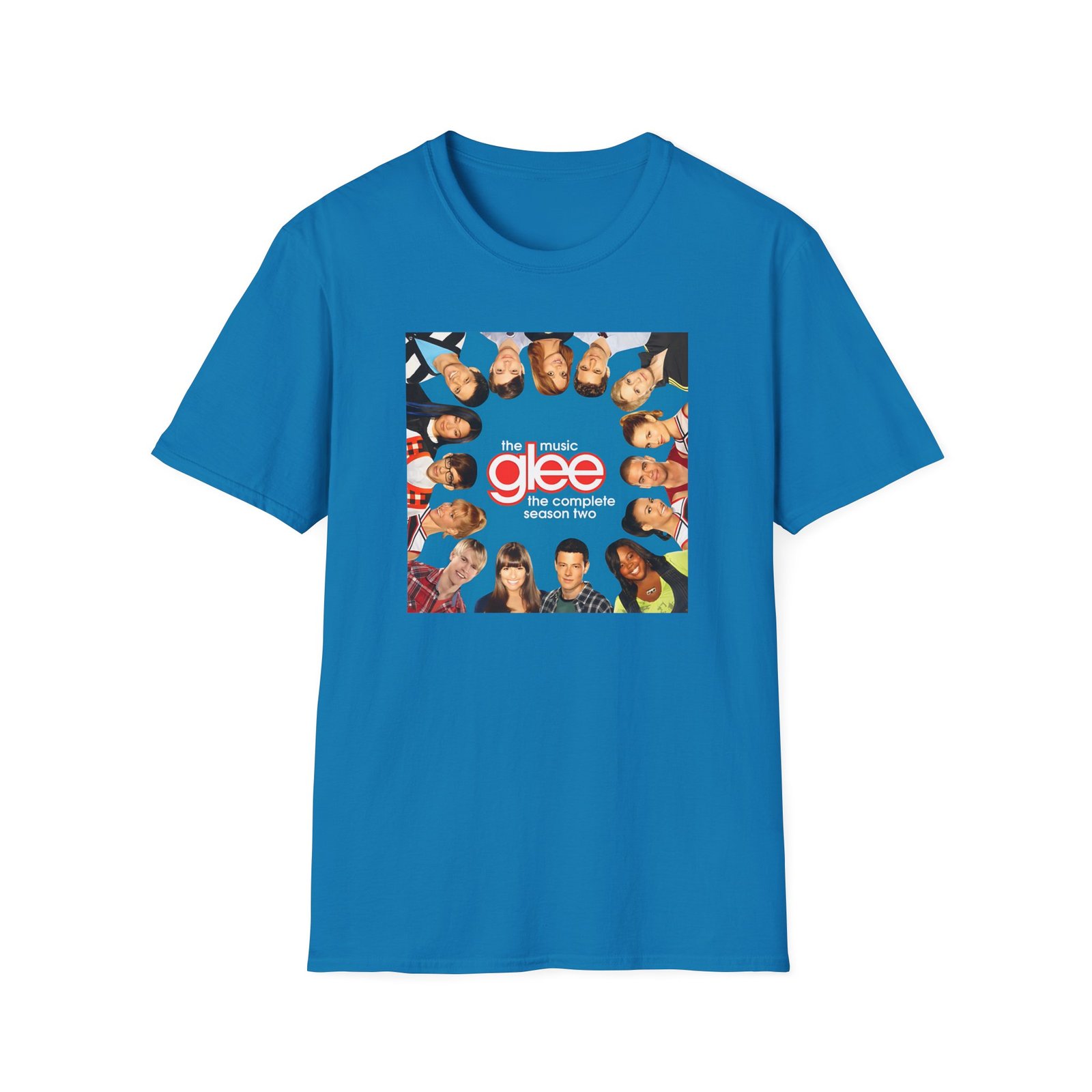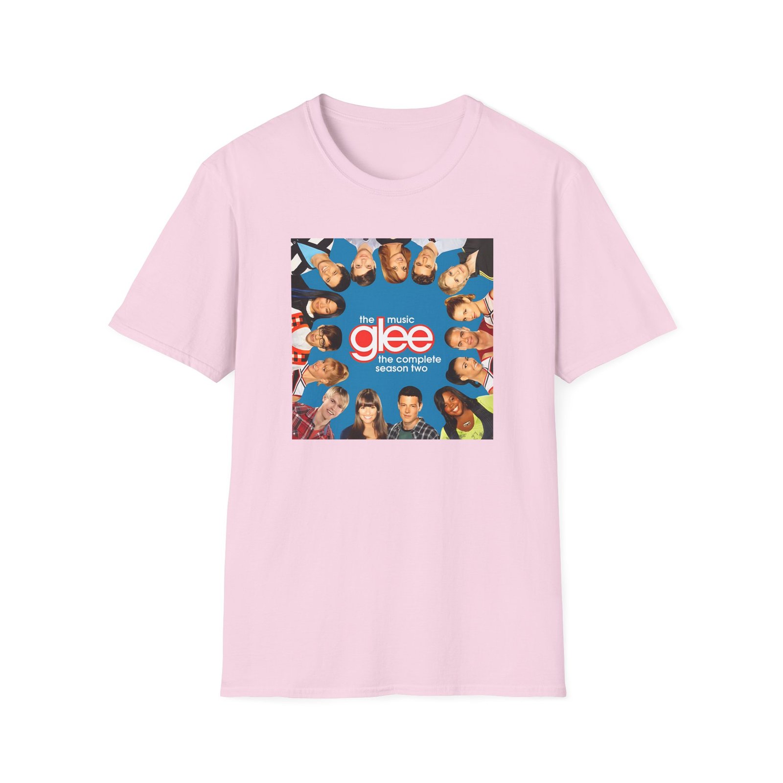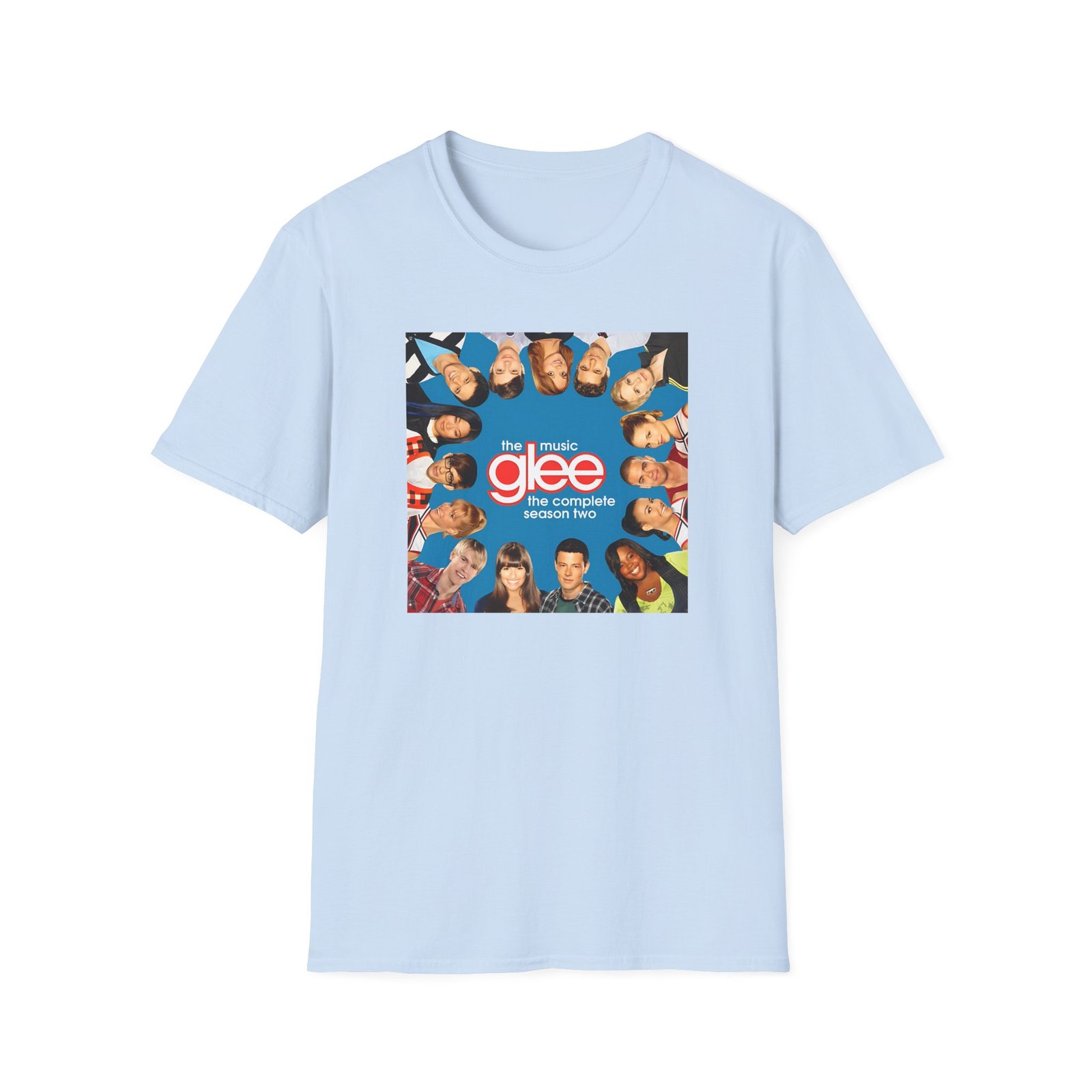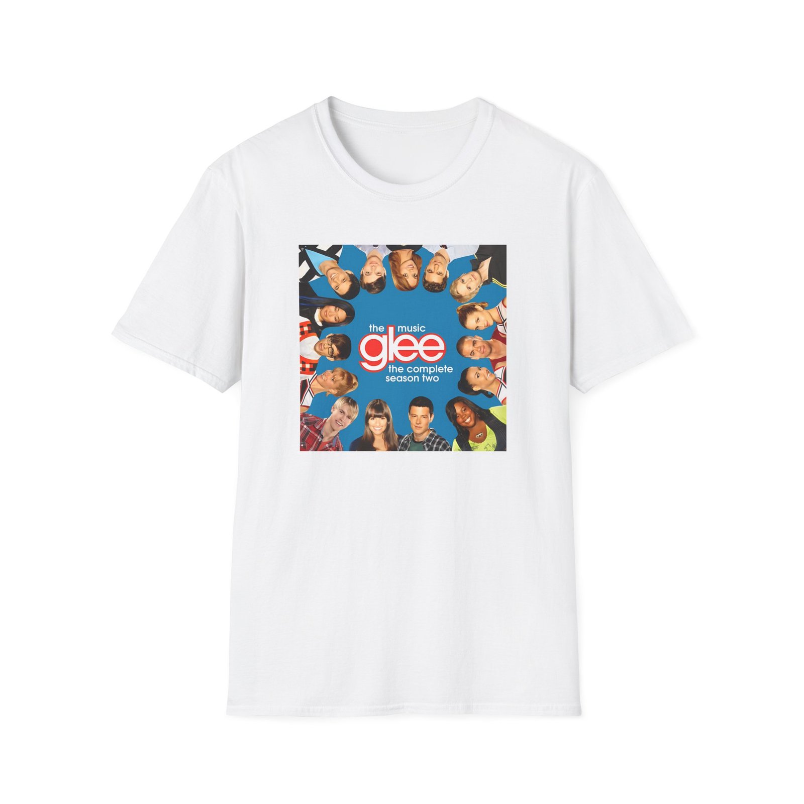 The Glee Cast Silhouette Musical unisex soft-style t-shirt puts a new spin on casual comfort. Made from very soft materials, this tee is 100% cotton for solid colors. Heather colors and sports grey include polyester. The shoulders have twill tape for improved durability. There are no side seams. The collar is made with ribbed knitting to prevent curling damage.