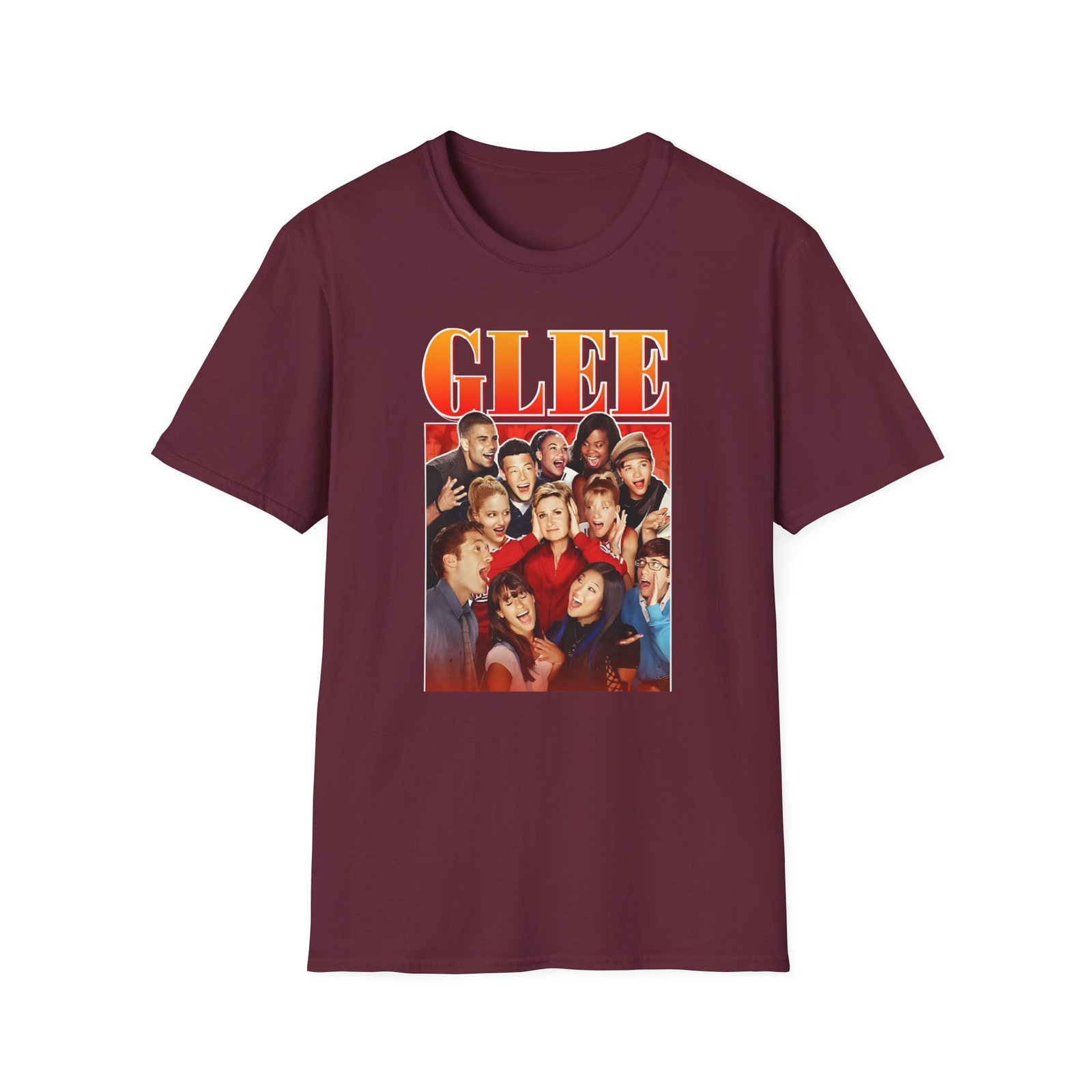The Glee Retro 90’s Fans Homage unisex soft-style t-shirt puts a new spin on casual comfort. Made from very soft materials, this tee is 100% cotton for solid colors. Heather colors and sports grey include polyester. The shoulders have twill tape for improved durability. There are no side seams. The collar is made with ribbed knitting to prevent curling damage.