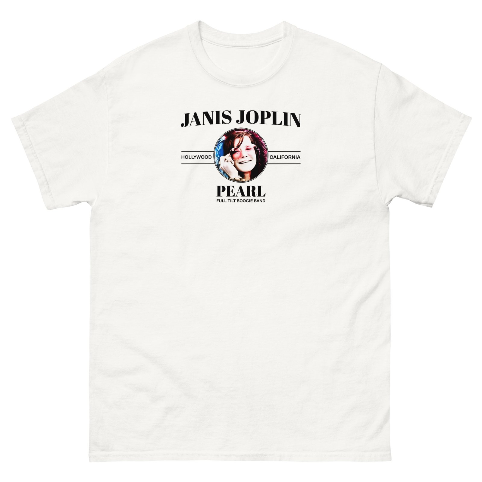 The 100% cotton Janis Joplin Pearl unisex classic tee will help you land a more structured look. It sits nicely, maintains sharp lines around the edges, and goes perfectly with layered streetwear outfits. Plus, it’s extra trendy now!