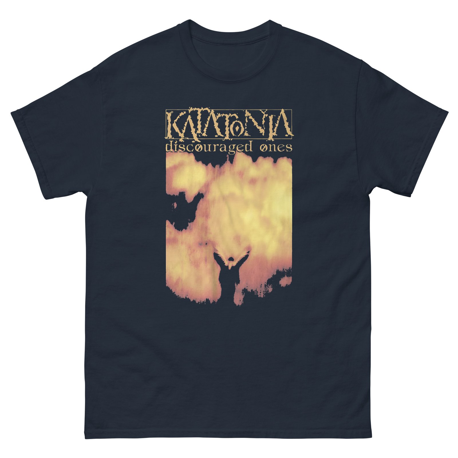 The 100% cotton Katatonia Discouraged Ones unisex classic tee will help you land a more structured look. It sits nicely, maintains sharp lines around the edges, and goes perfectly with layered streetwear outfits. Plus, it’s extra trendy now!
