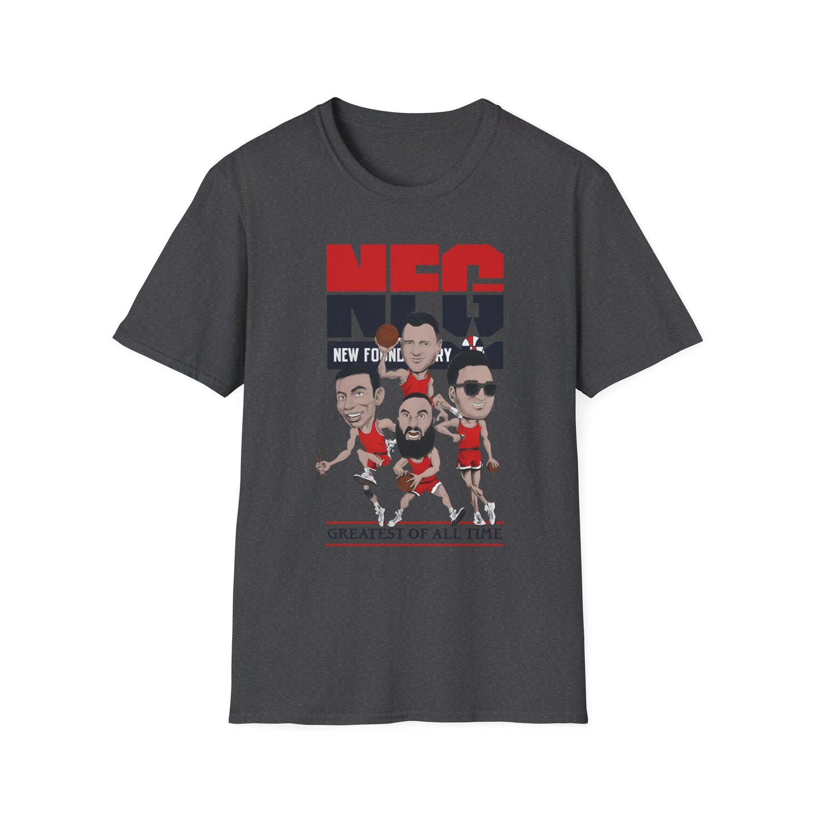 The New Found Glory Basketball unisex soft-style t-shirt puts a new spin on casual comfort. Made from very soft materials, this tee is 100% cotton for solid colors. Heather colors and sports grey include polyester. The shoulders have twill tape for improved durability. There are no side seams. The collar is made with ribbed knitting to prevent curling damage.