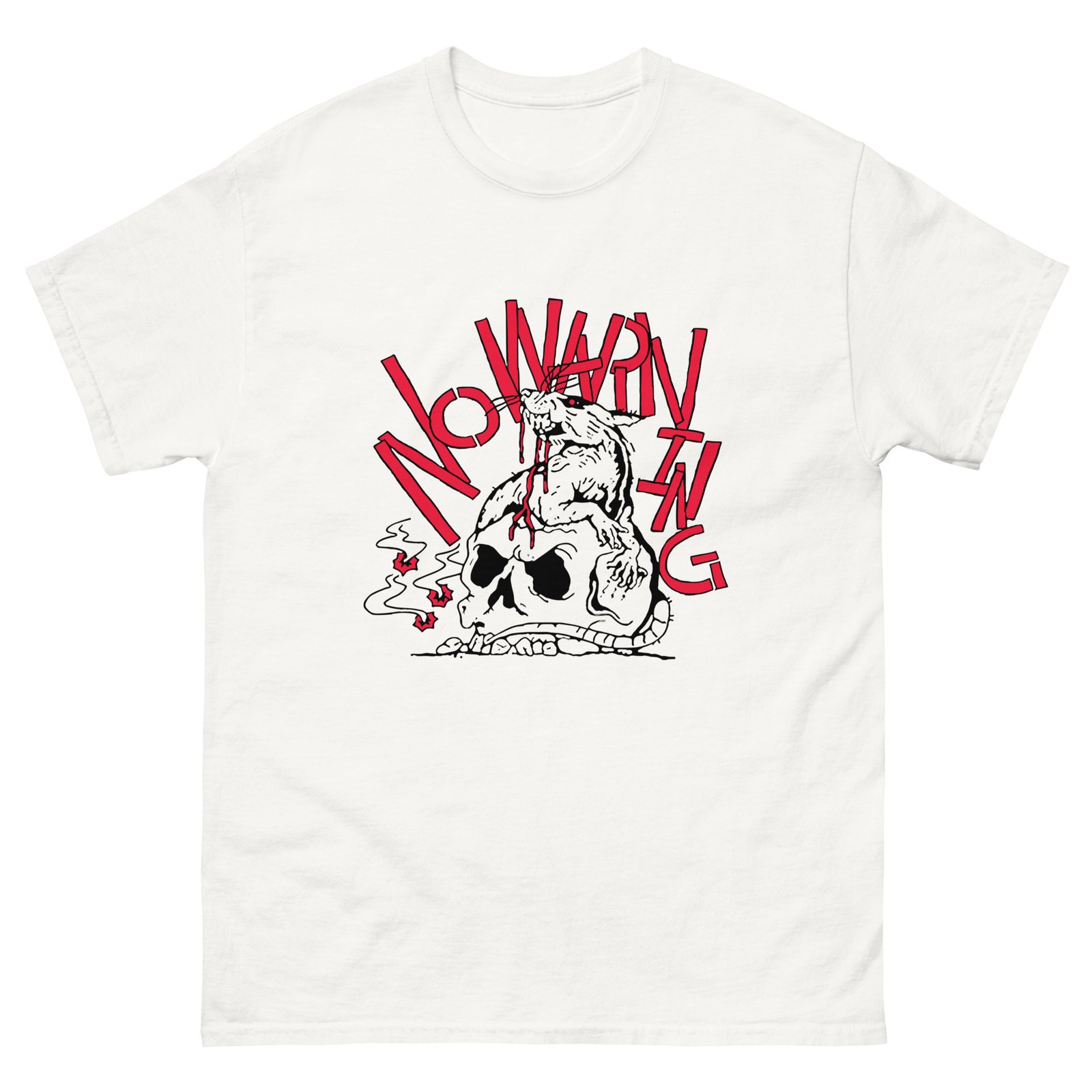 The 100% cotton No Warning Rat Skull unisex classic tee will help you land a more structured look. It sits nicely, maintains sharp lines around the edges, and goes perfectly with layered streetwear outfits. Plus, it’s extra trendy now!