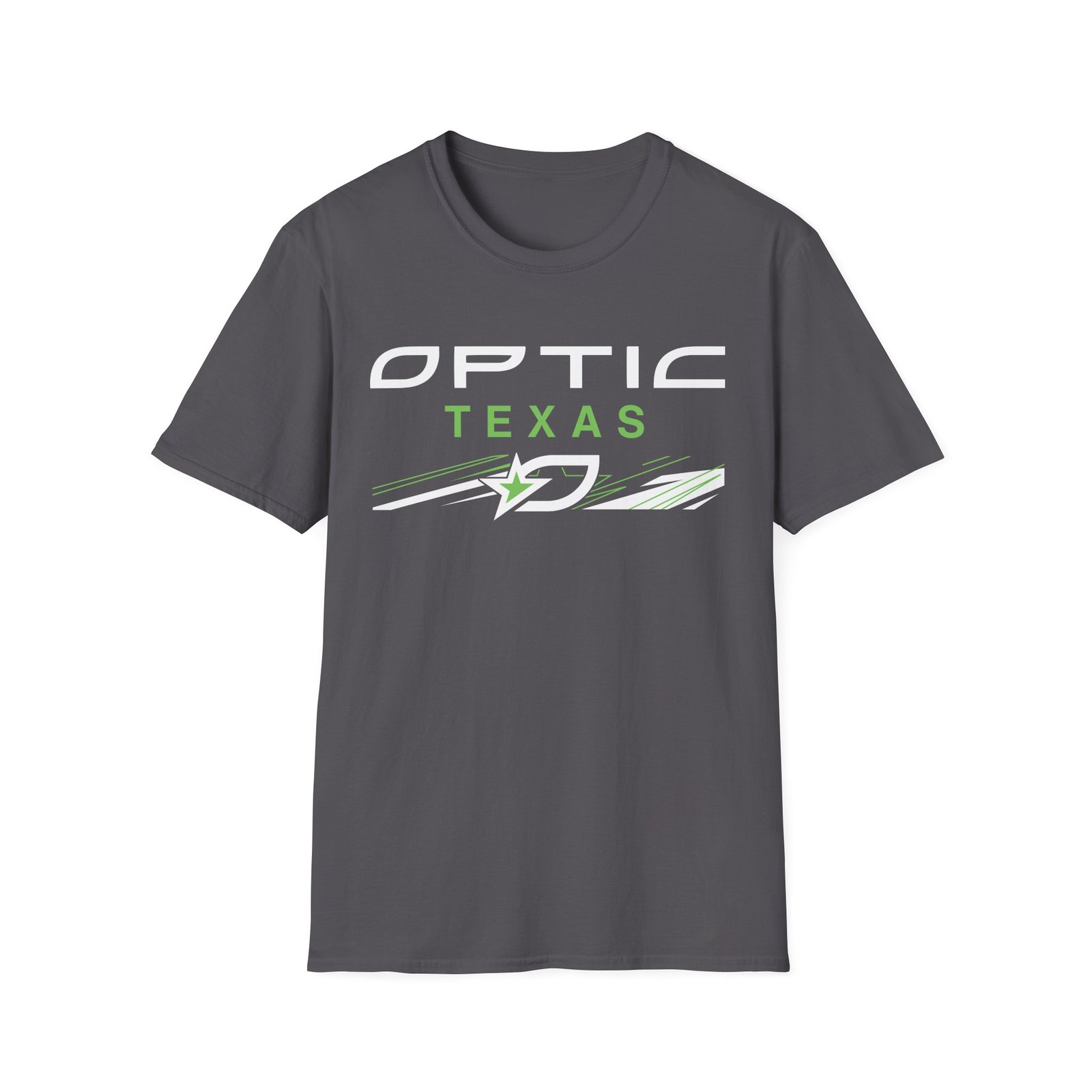 The Optic Texas unisex soft-style t-shirt puts a new spin on casual comfort. Made from very soft materials, this tee is 100% cotton for solid colors. Heather colors and sports grey include polyester. The shoulders have twill tape for improved durability. There are no side seams. The collar is made with ribbed knitting to prevent curling damage.