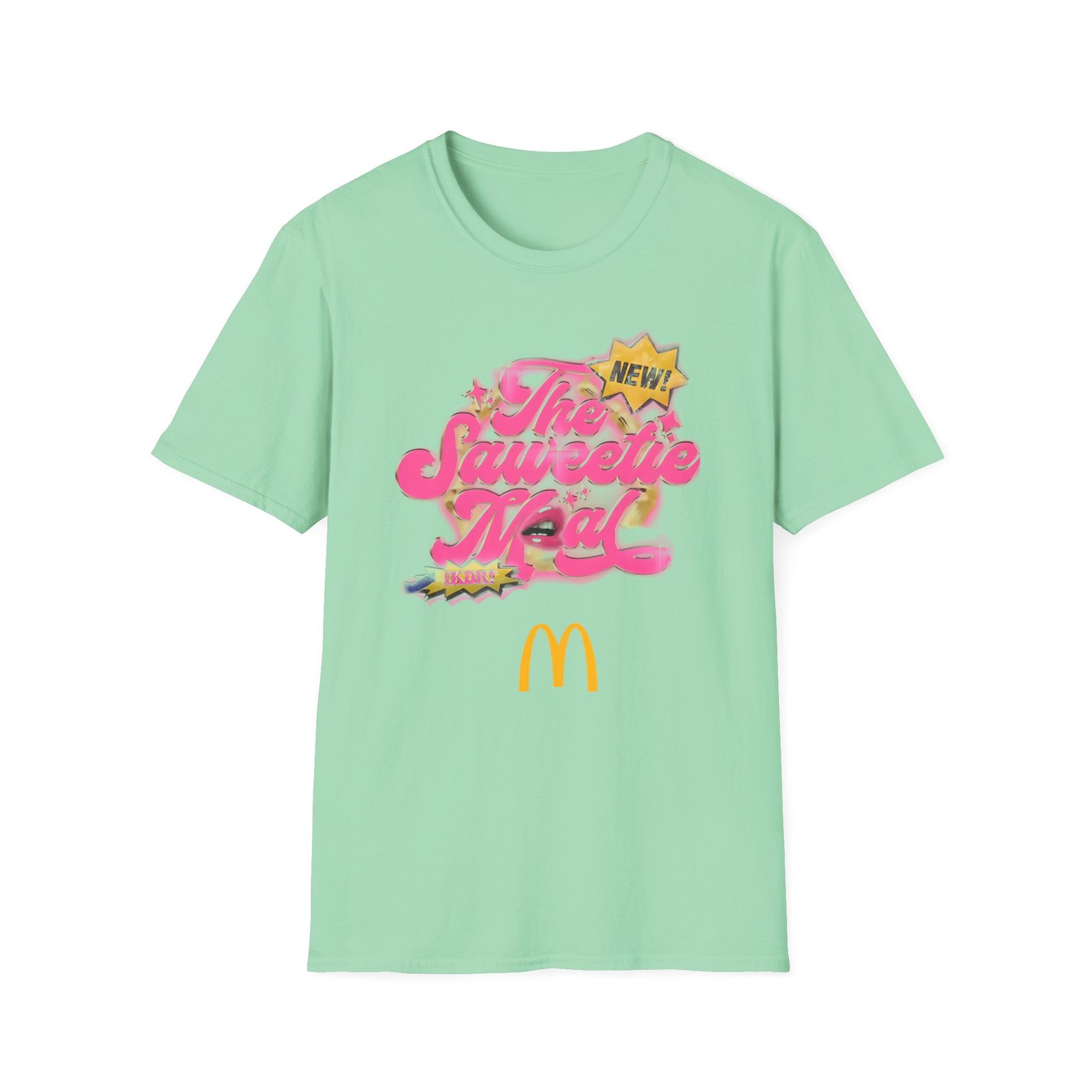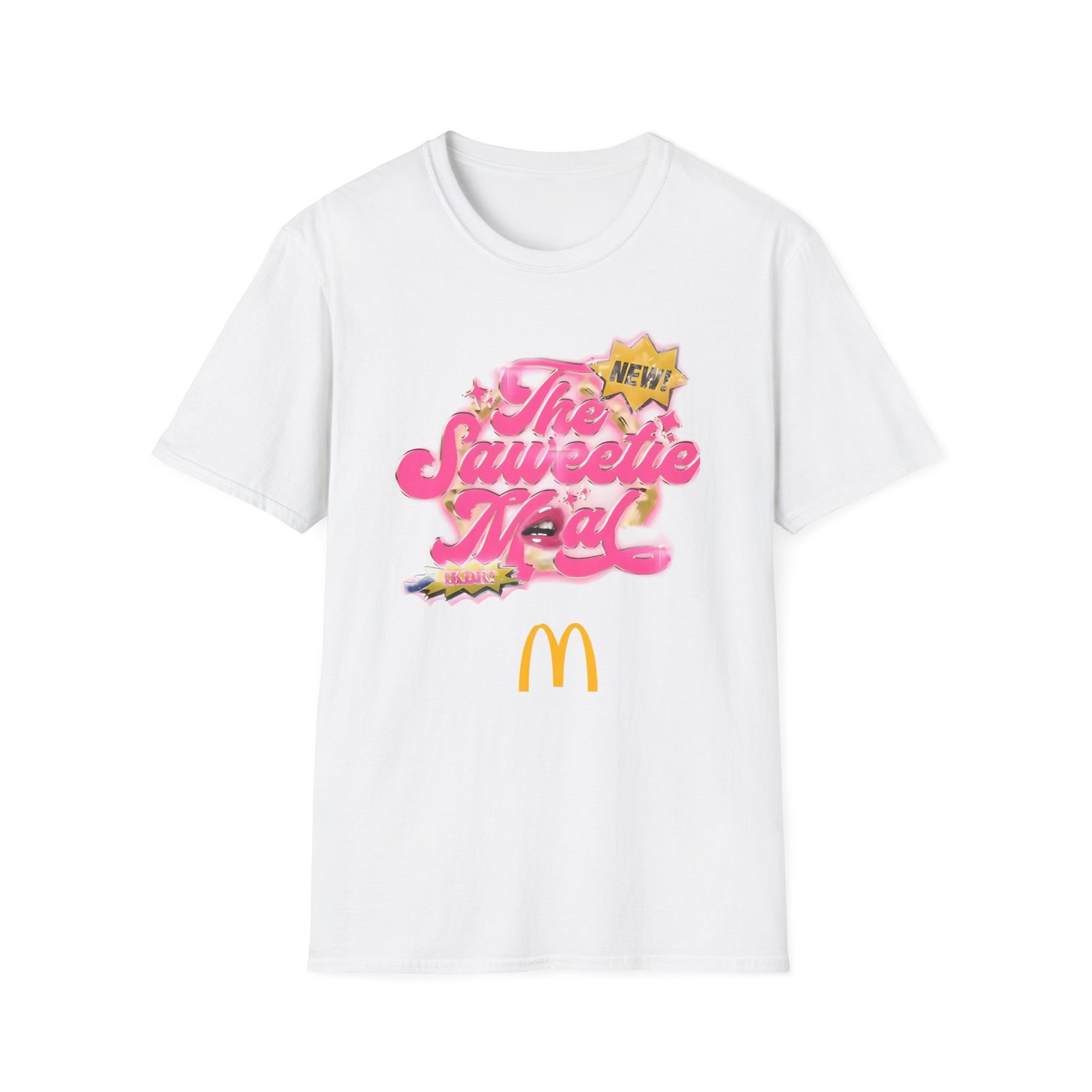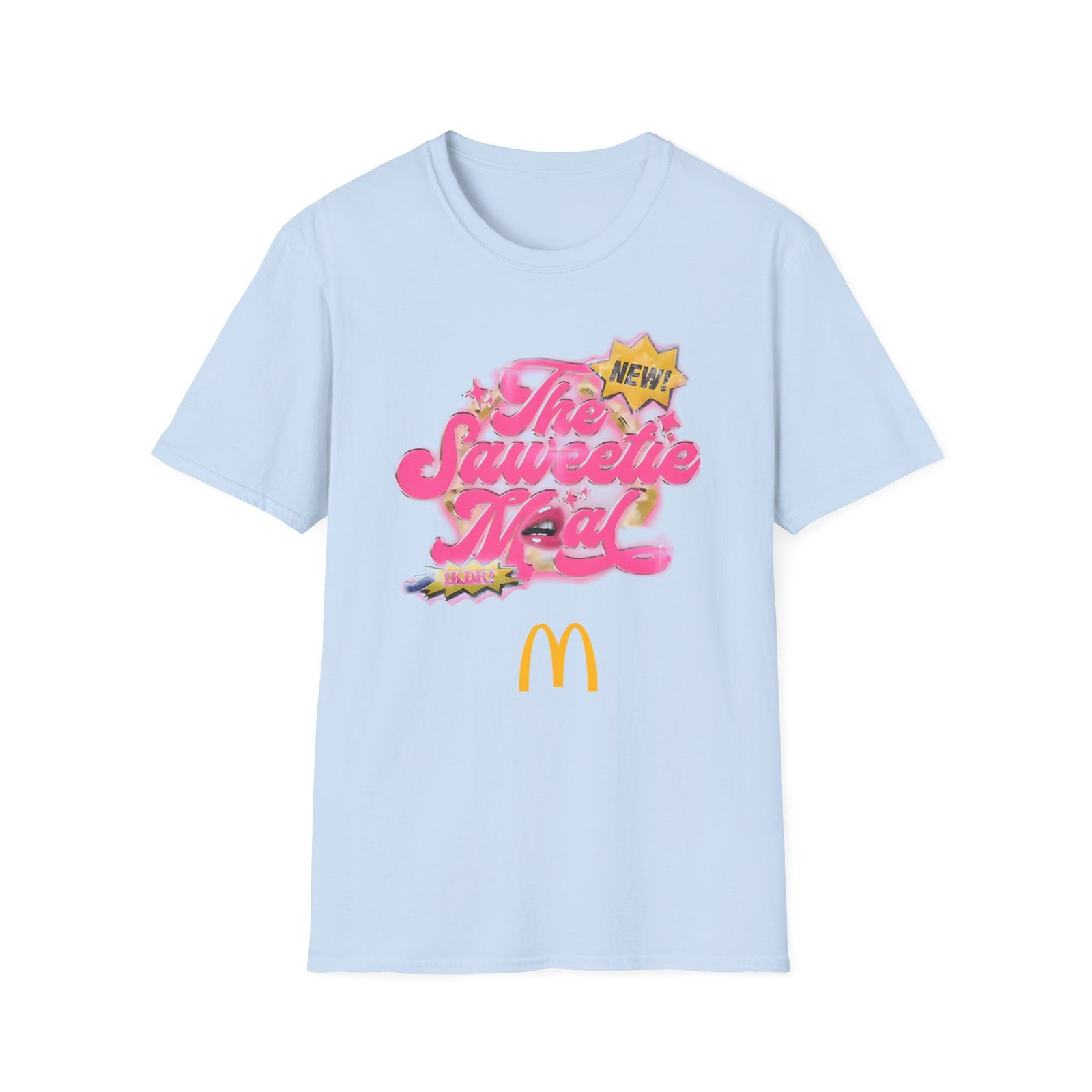 The Saweetie Mcdonald’s Meal unisex soft-style t-shirt puts a new spin on casual comfort. Made from very soft materials, this tee is 100% cotton for solid colors. Heather colors and sports grey include polyester. The shoulders have twill tape for improved durability. There are no side seams. The collar is made with ribbed knitting to prevent curling damage.