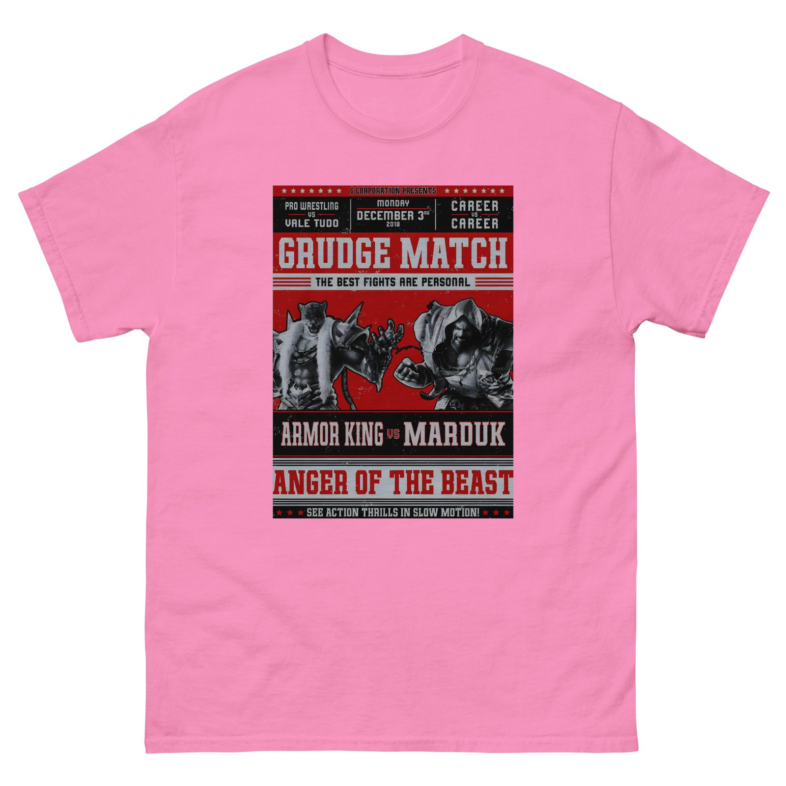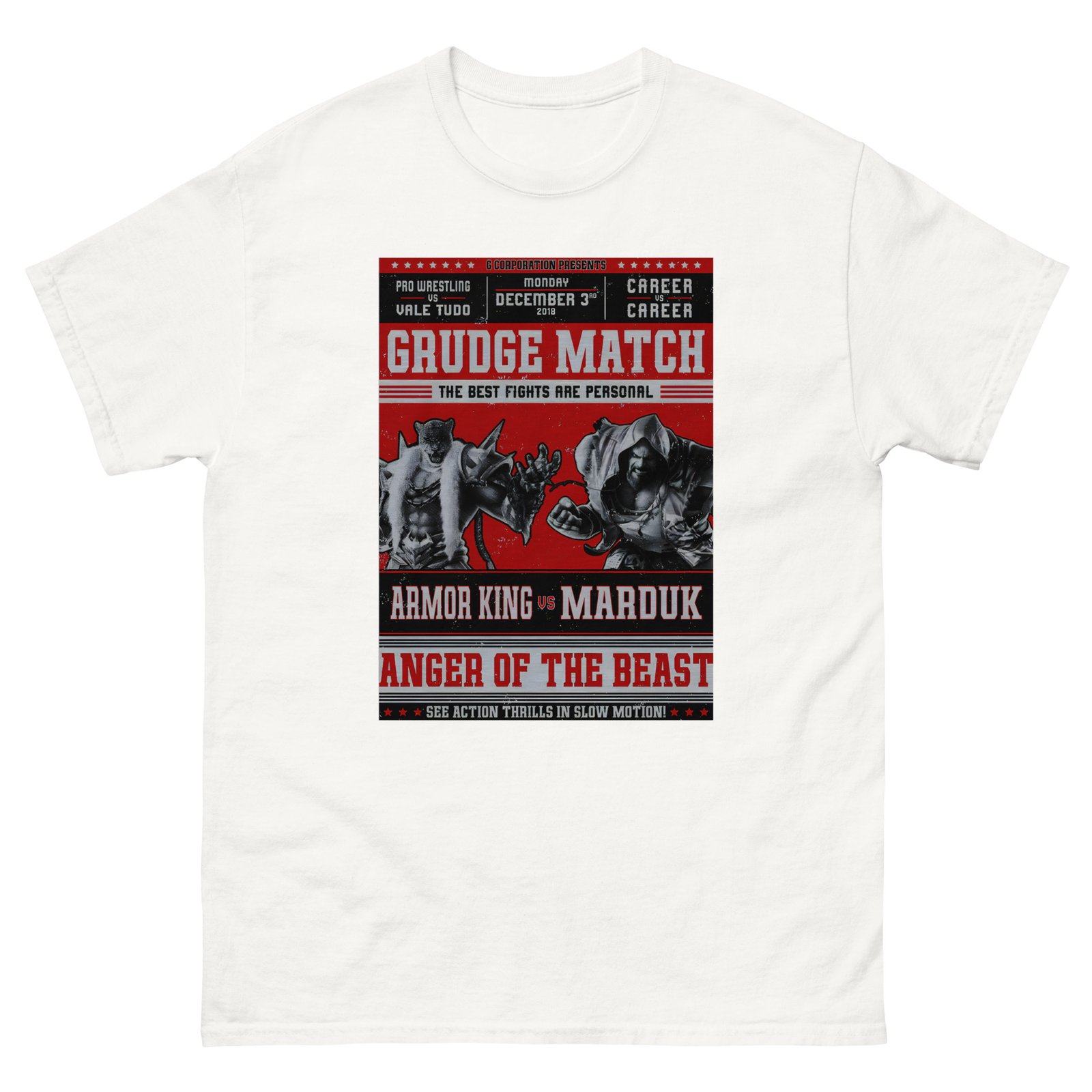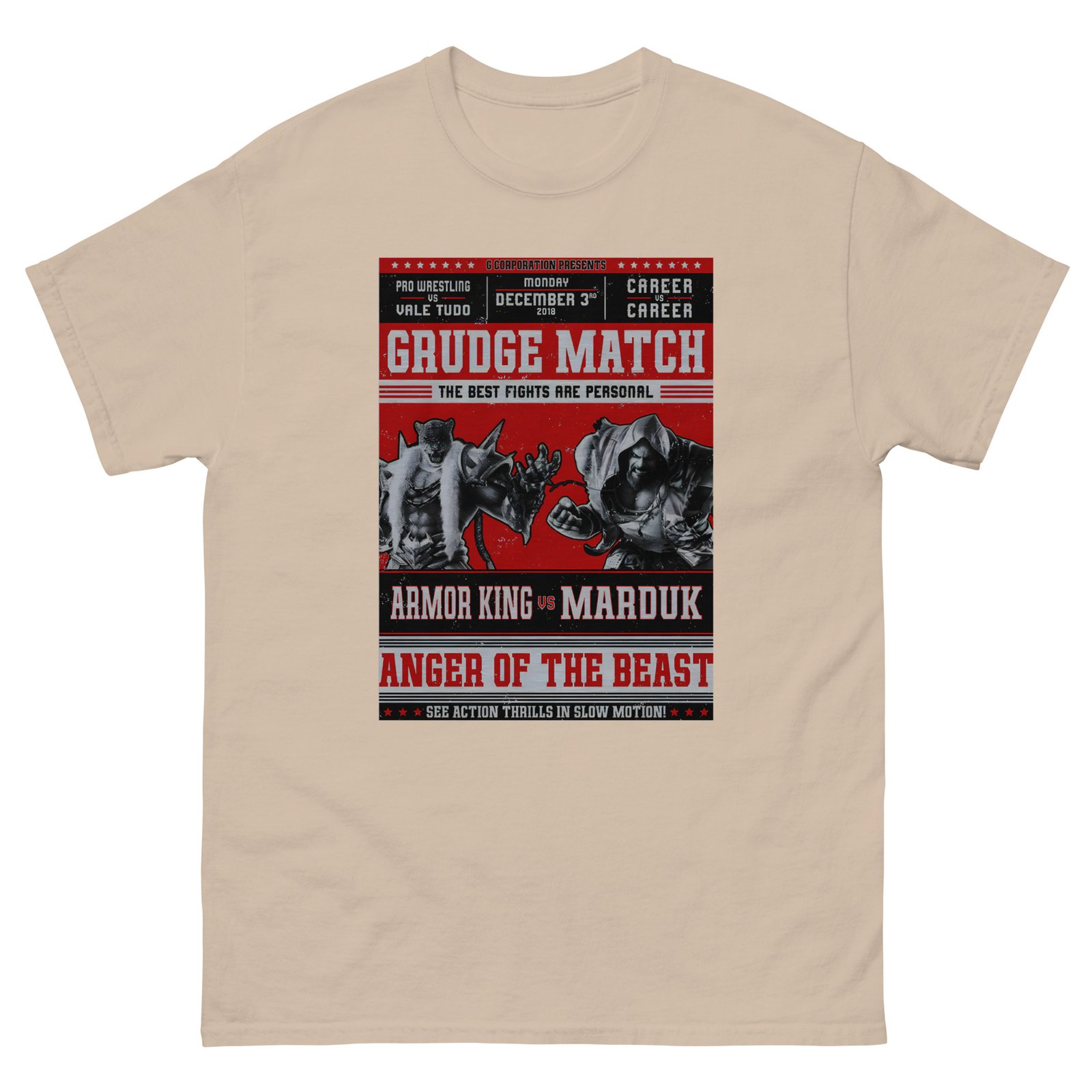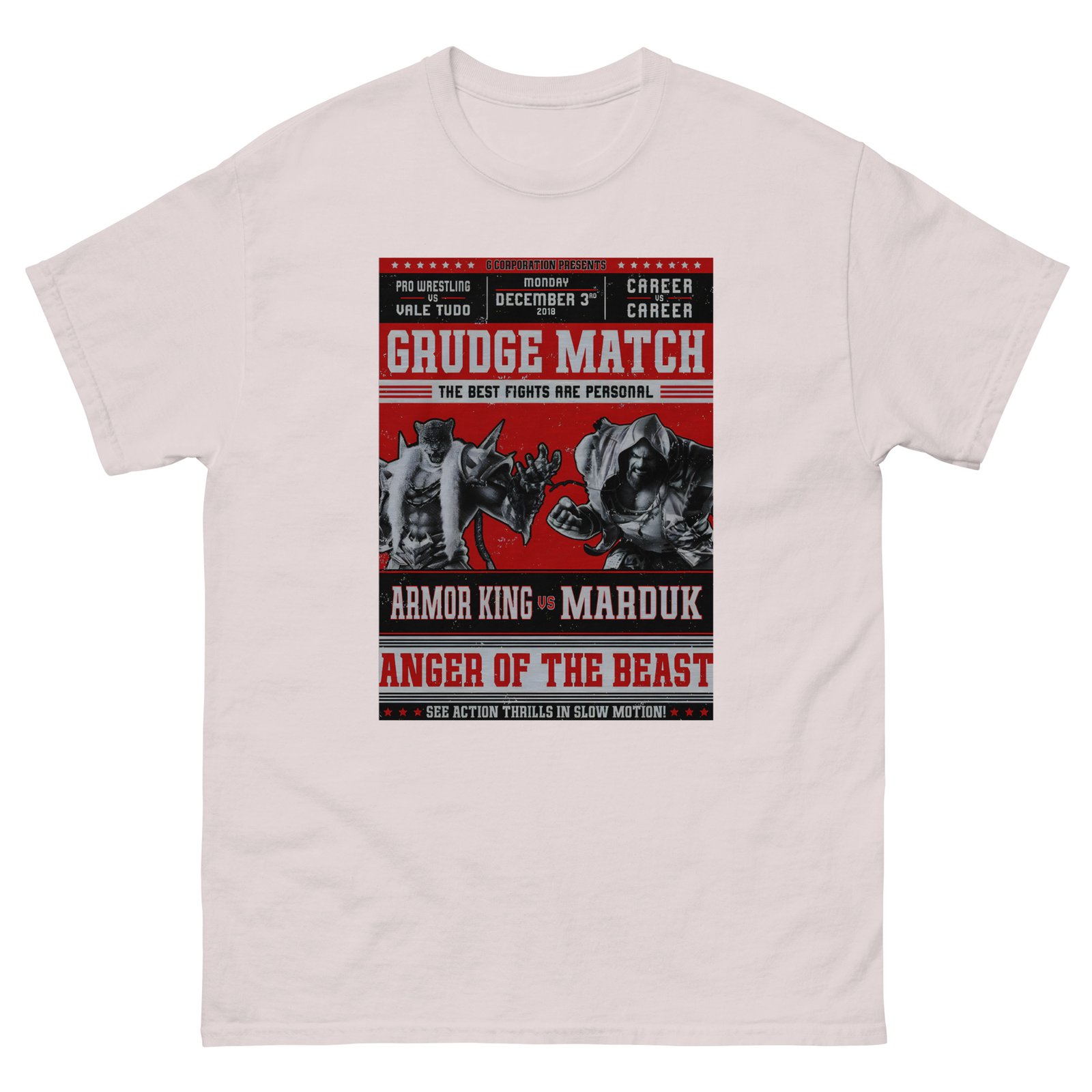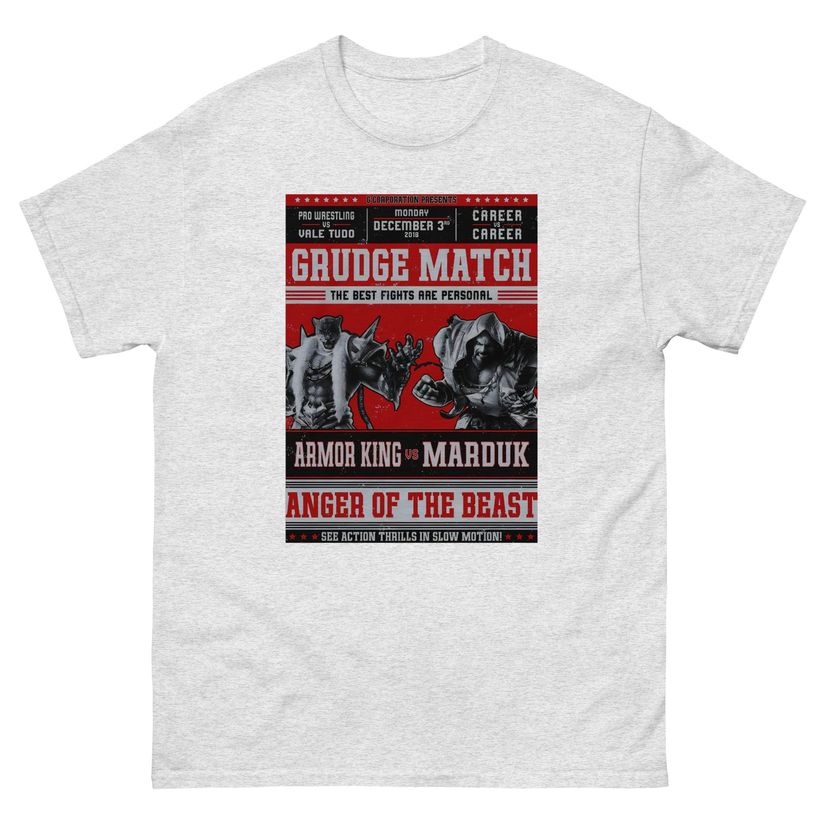 The 100% cotton Tekken Marduk vs Armor King Grudge unisex classic tee will help you land a more structured look. It sits nicely, maintains sharp lines around the edges, and goes perfectly with layered streetwear outfits. Plus, it’s extra trendy now!