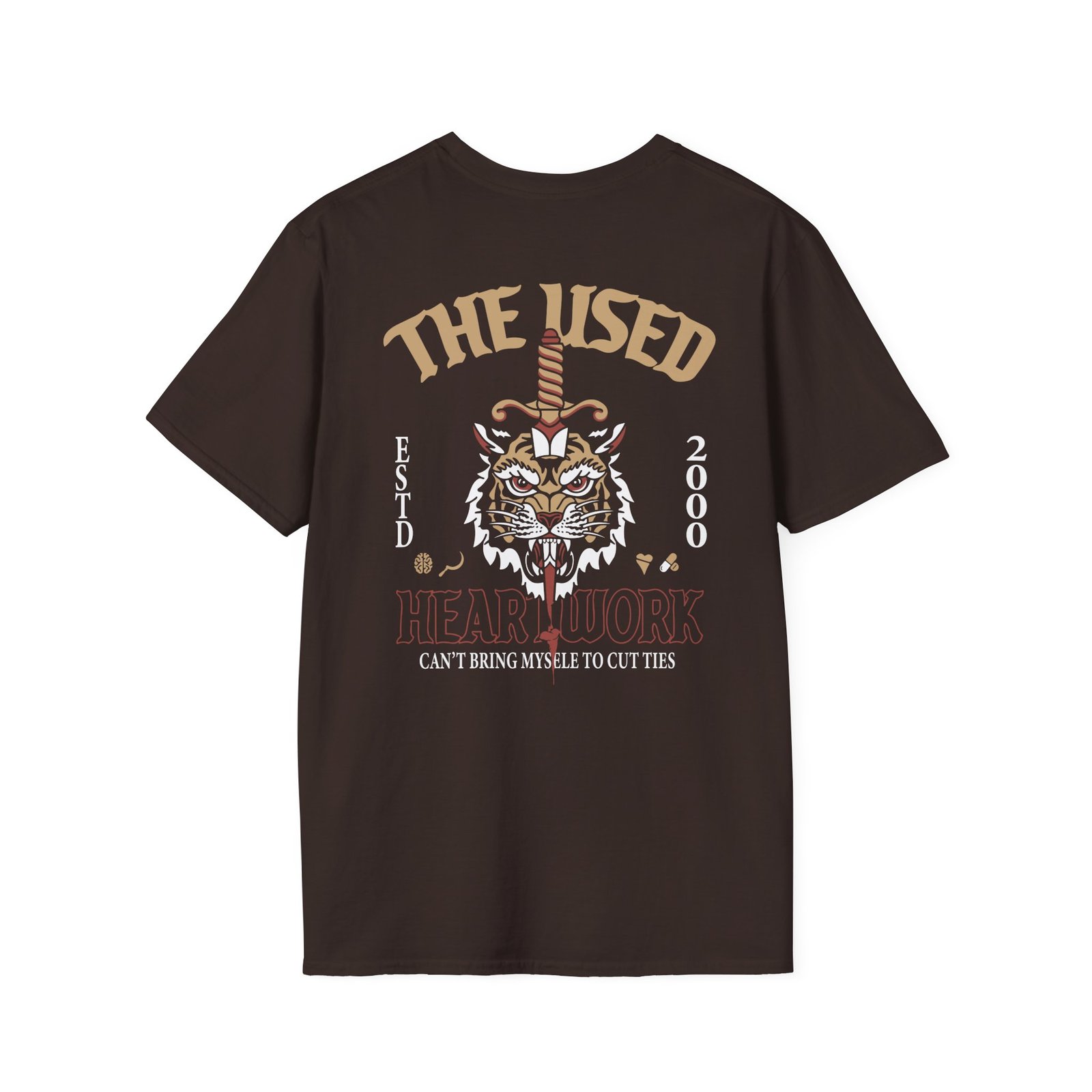 The The Used Tiger unisex soft-style t-shirt puts a new spin on casual comfort. Made from very soft materials, this tee is 100% cotton for solid colors. Heather colors and sports grey include polyester. The shoulders have twill tape for improved durability. There are no side seams. The collar is made with ribbed knitting to prevent curling damage.