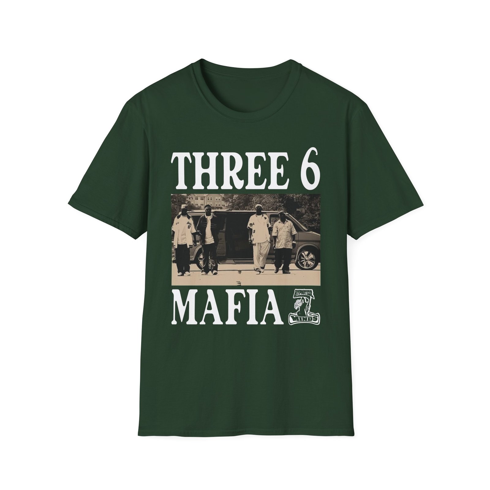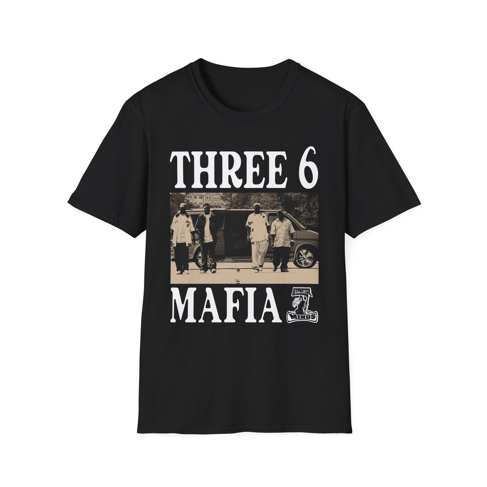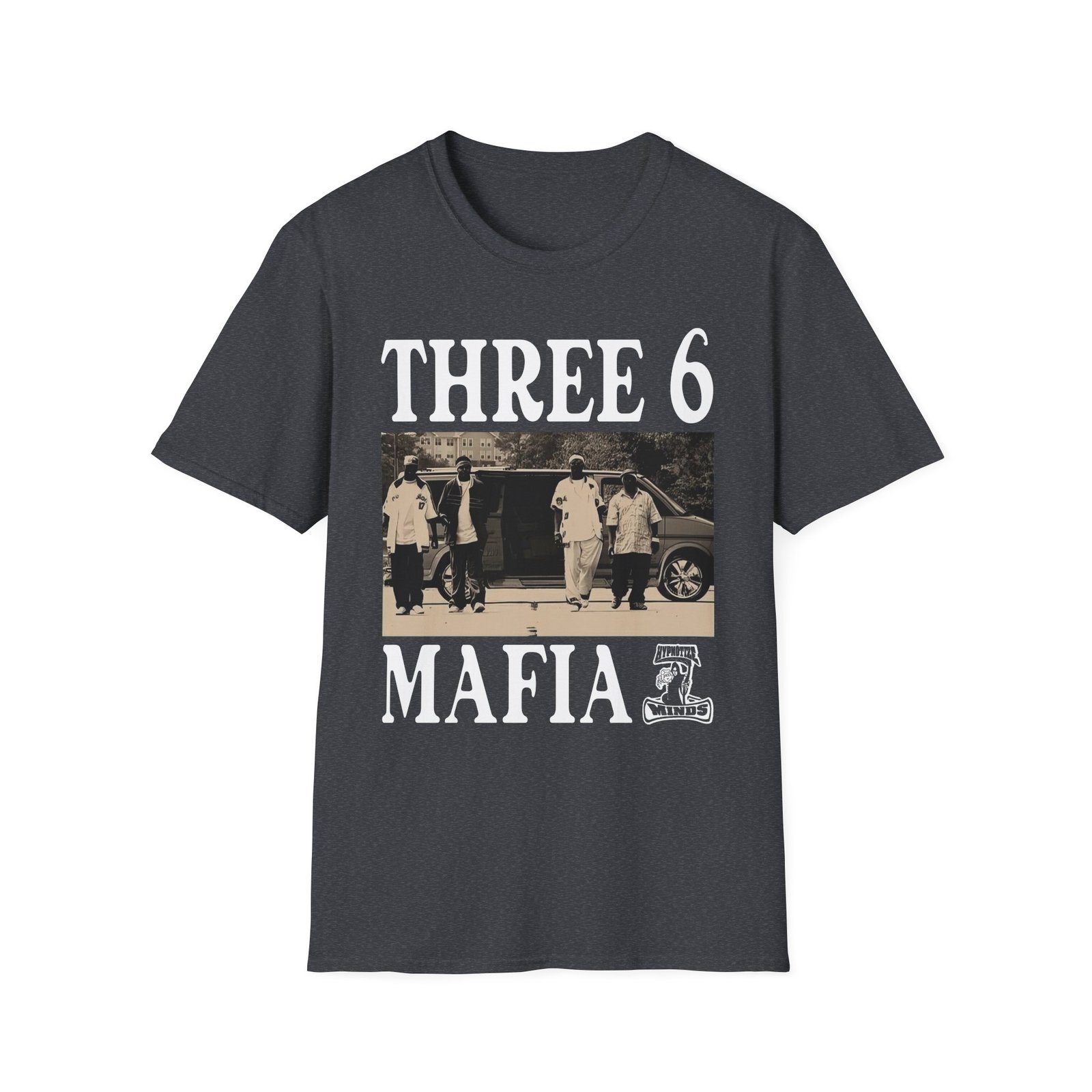 The Three 6 Mafia Ridin Spinners unisex soft-style t-shirt puts a new spin on casual comfort. Made from very soft materials, this tee is 100% cotton for solid colors. Heather colors and sports grey include polyester. The shoulders have twill tape for improved durability. There are no side seams. The collar is made with ribbed knitting to prevent curling damage.