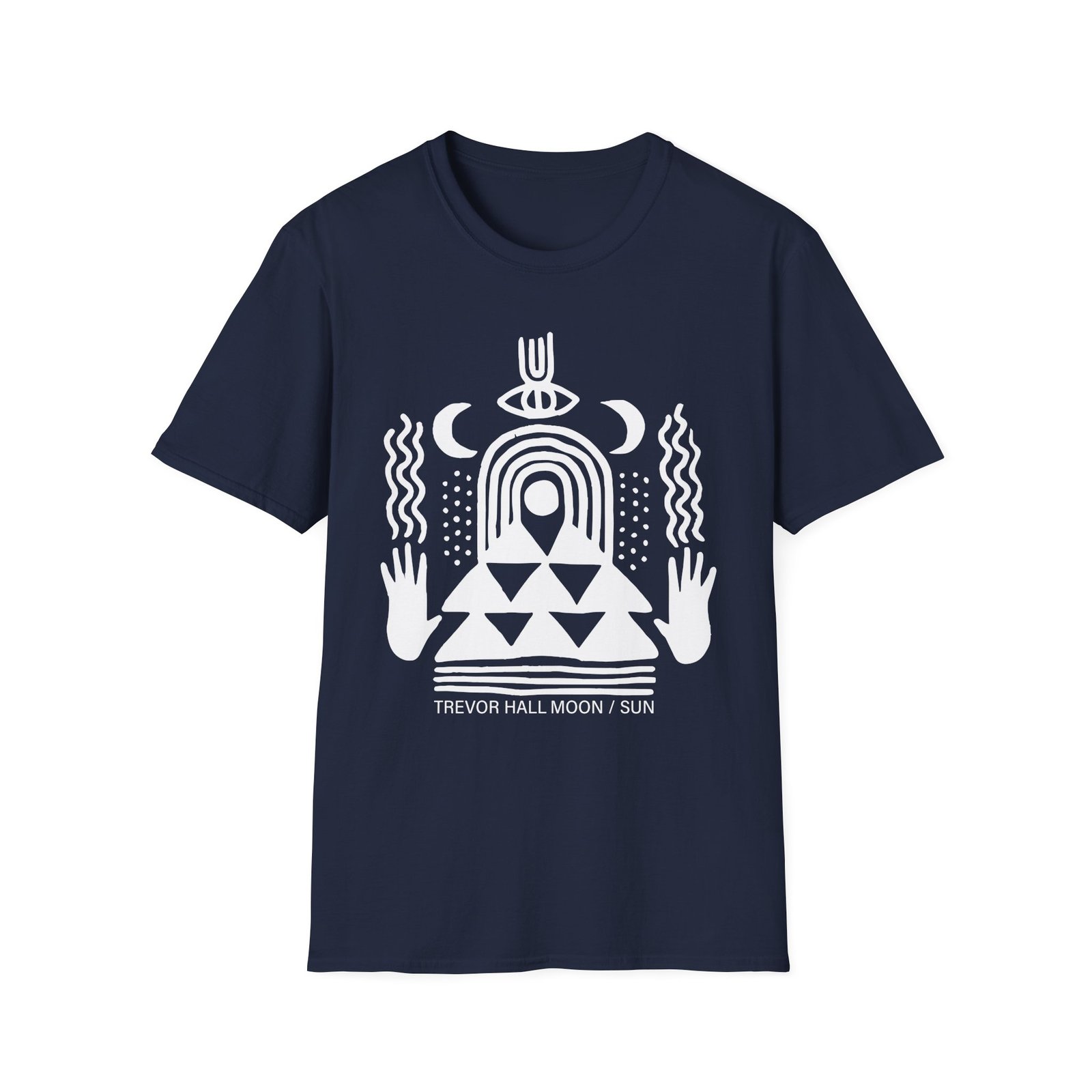 The Trevor Hall Moon / Sun unisex soft-style t-shirt puts a new spin on casual comfort. Made from very soft materials, this tee is 100% cotton for solid colors. Heather colors and sports grey include polyester. The shoulders have twill tape for improved durability. There are no side seams. The collar is made with ribbed knitting to prevent curling damage.