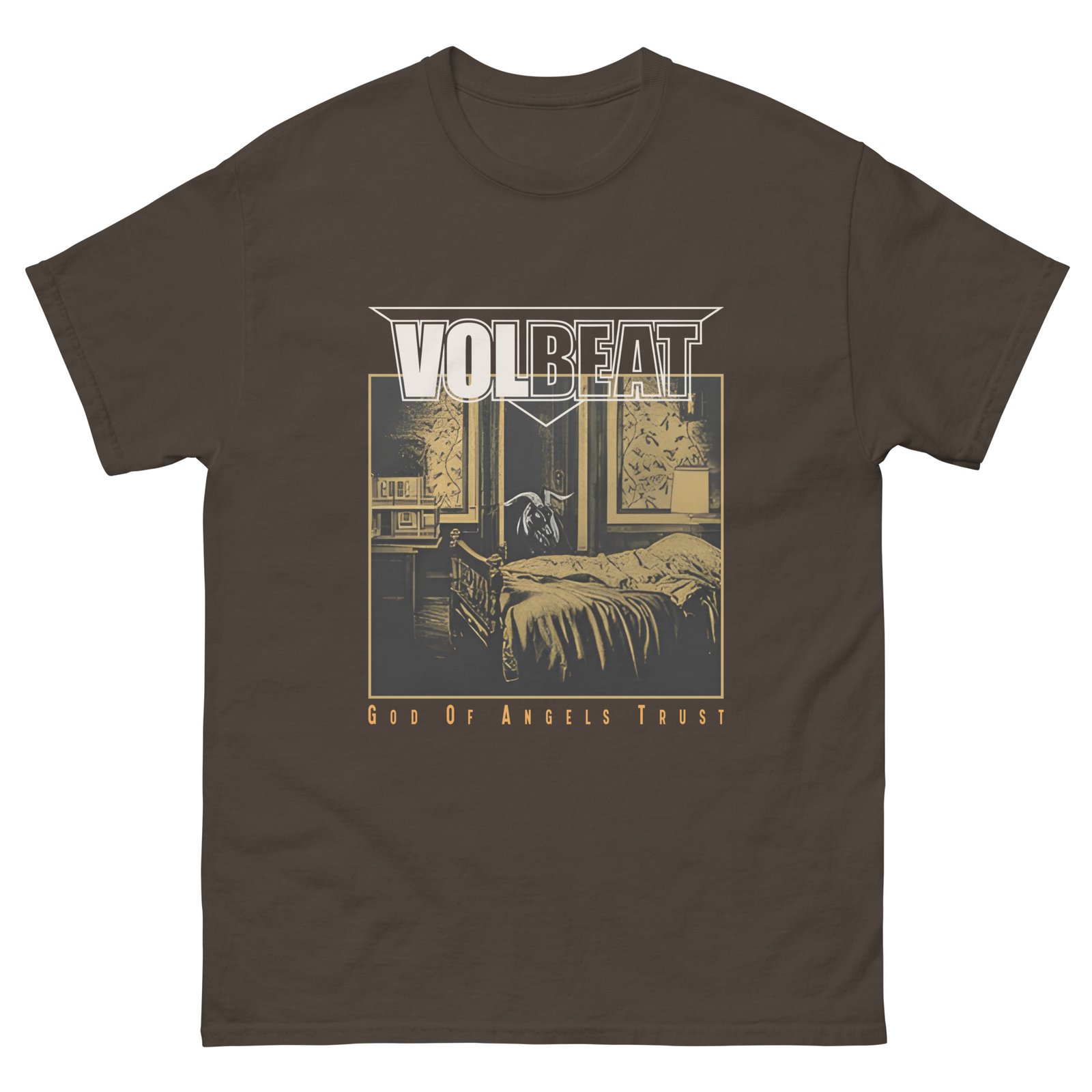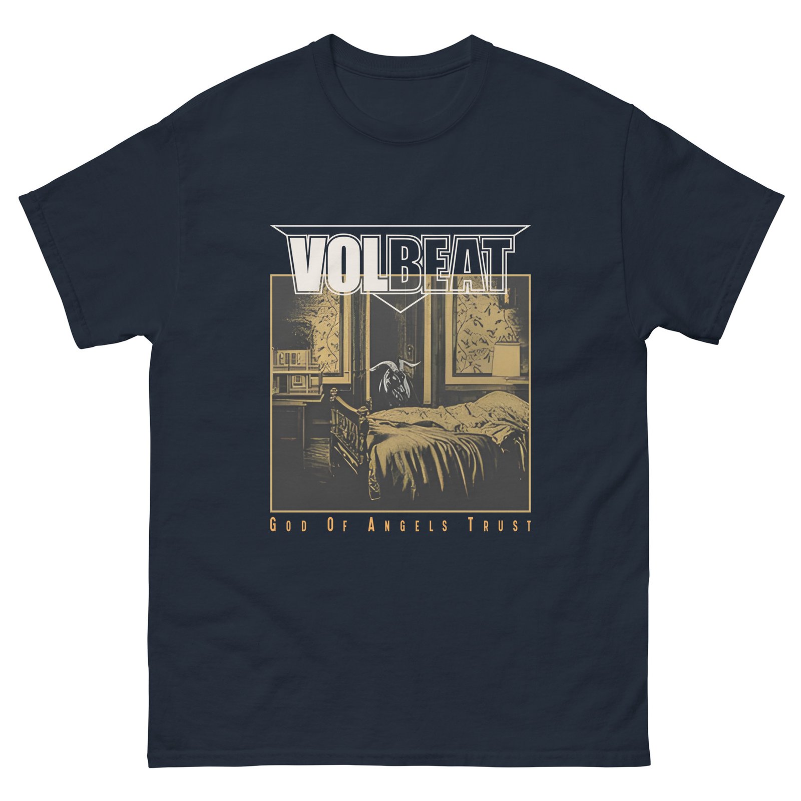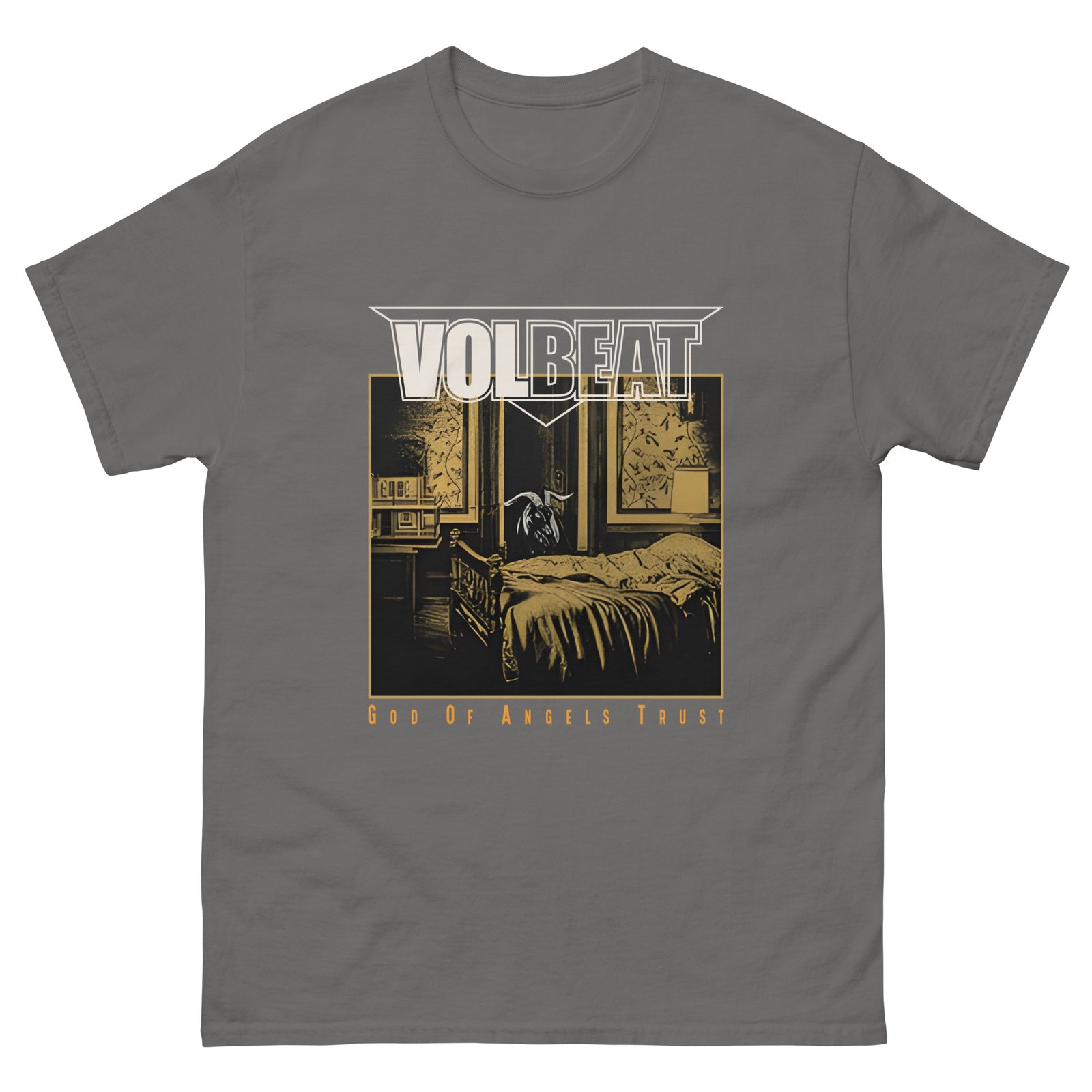 The 100% cotton Volbeat God Of Angels Trust unisex classic tee will help you land a more structured look. It sits nicely, maintains sharp lines around the edges, and goes perfectly with layered streetwear outfits. Plus, it’s extra trendy now!