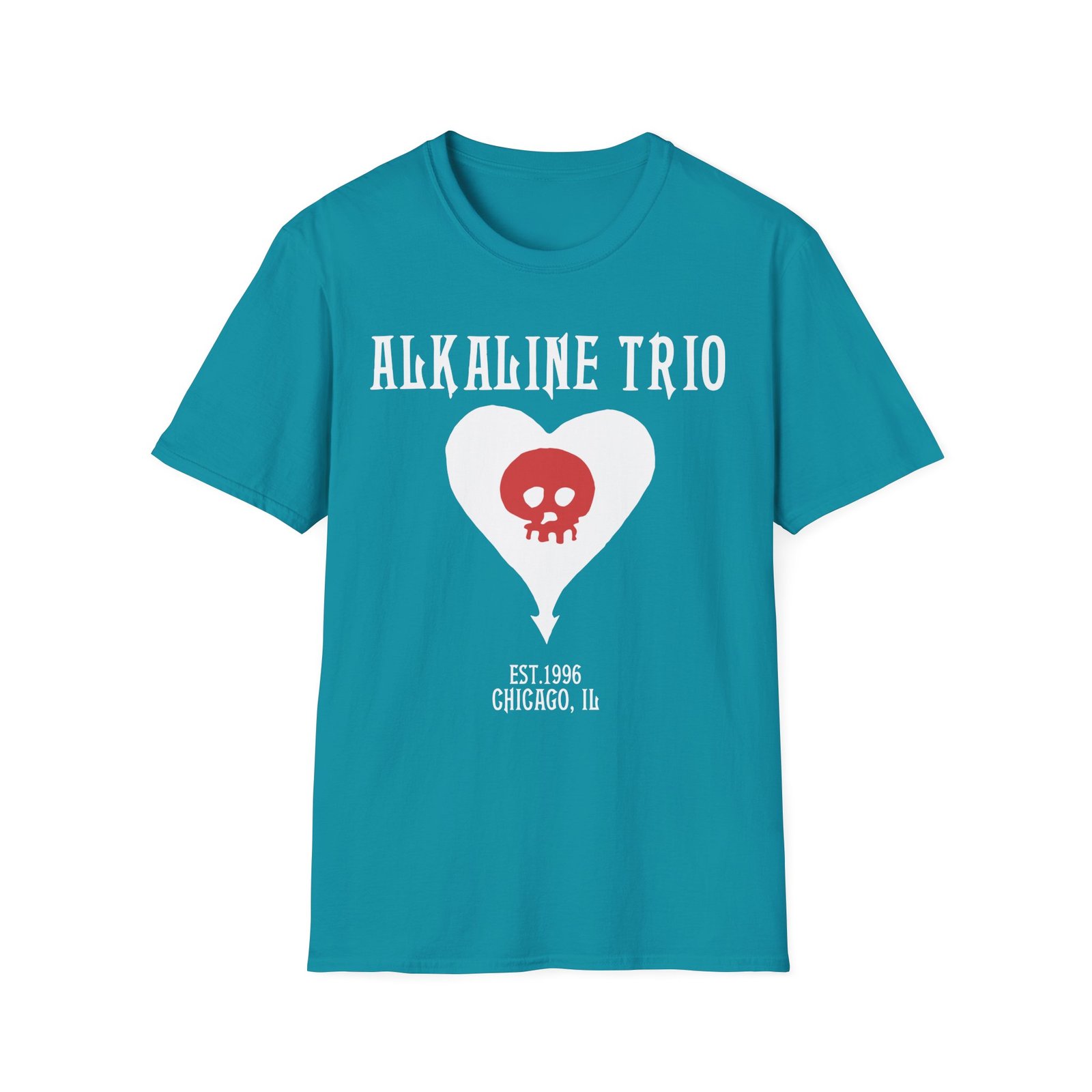 The Alkaline Trio Heartskull Album Icons unisex soft-style t-shirt puts a new spin on casual comfort. Made from very soft materials, this tee is 100% cotton for solid colors. Heather colors and sports grey include polyester. The shoulders have twill tape for improved durability. There are no side seams. The collar is made with ribbed knitting to prevent curling damage.