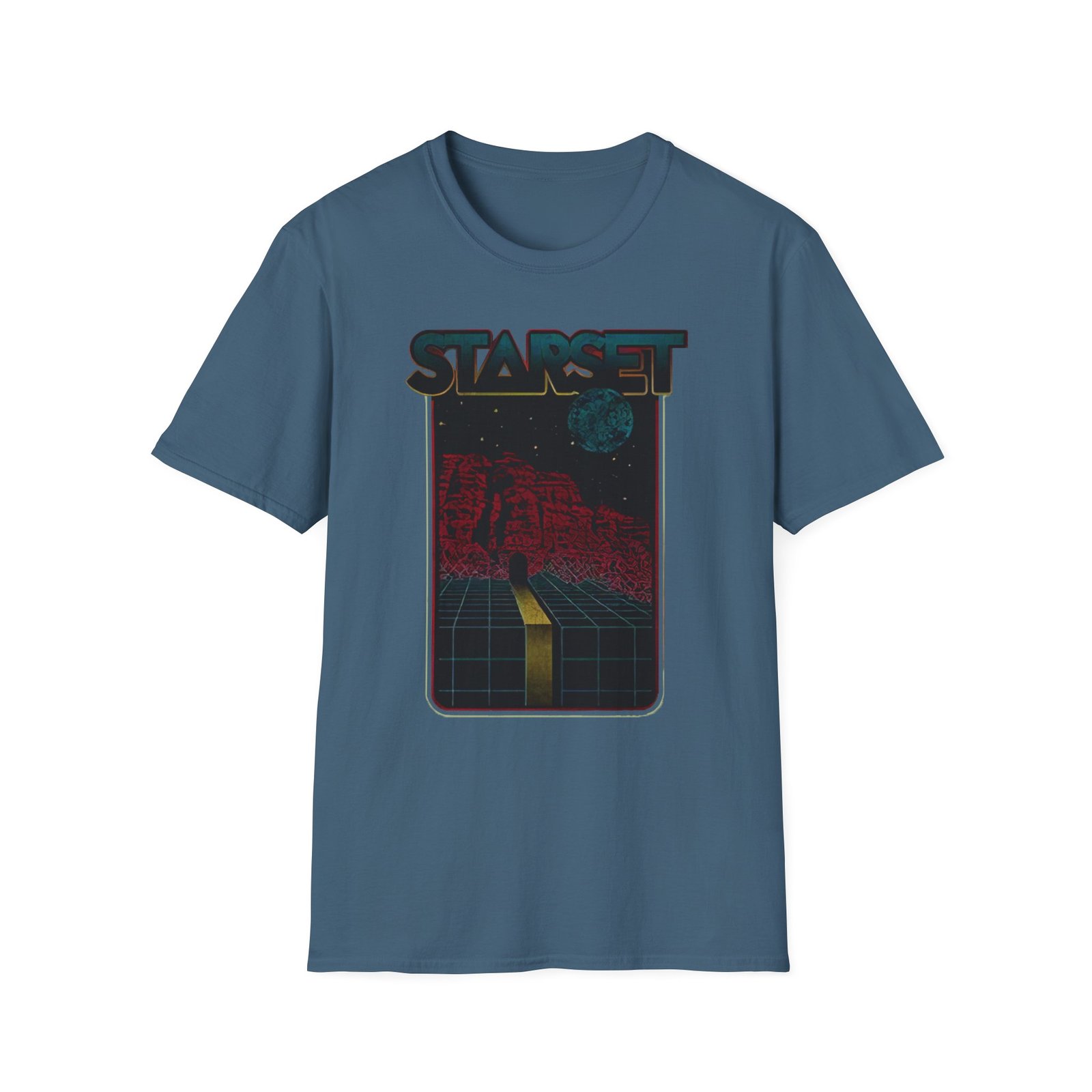 The Starset Moongrid unisex soft-style t-shirt puts a new spin on casual comfort. Made from very soft materials, this tee is 100% cotton for solid colors. Heather colors and sports grey include polyester. The shoulders have twill tape for improved durability. There are no side seams. The collar is made with ribbed knitting to prevent curling damage.